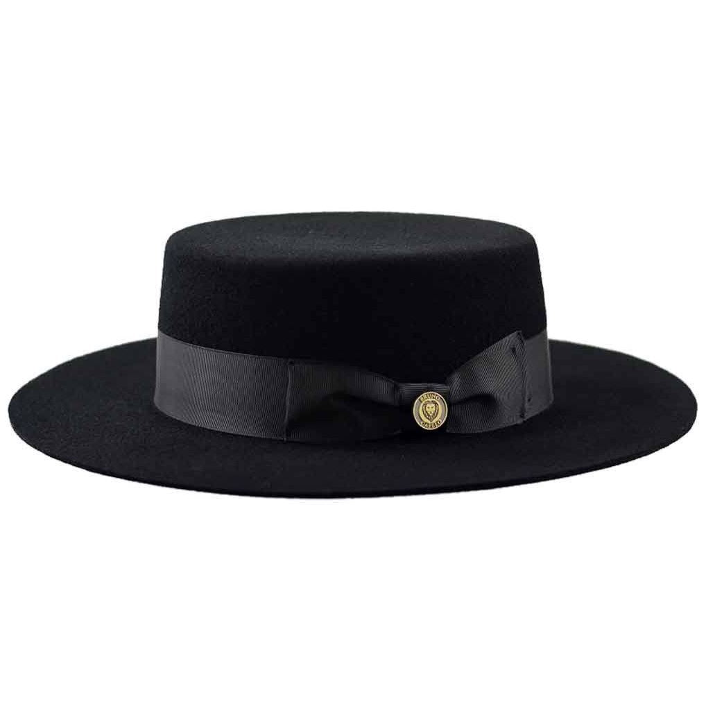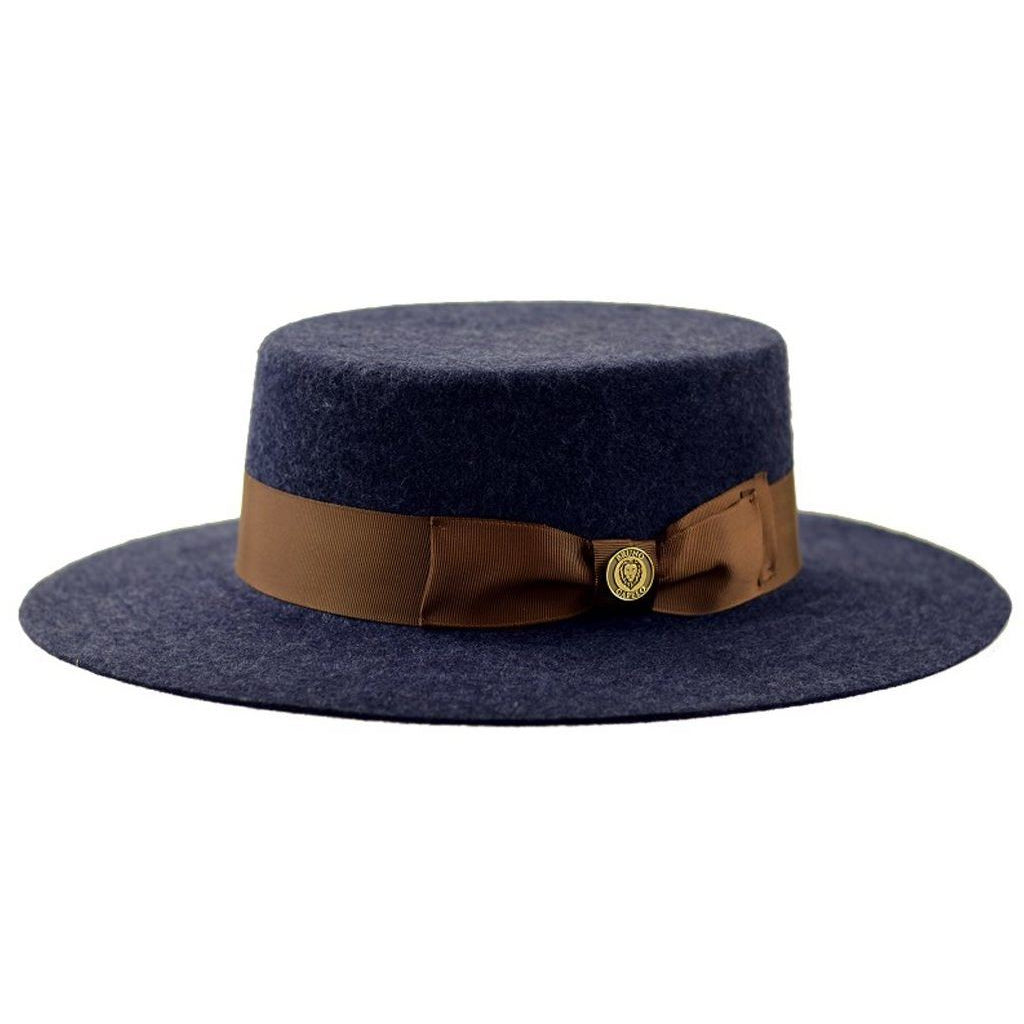 The Zayden by Bruno Capelo is a firm, flat brim wool felt hat with a wide 3" brim and flat top crown. It is a sleek fashion hat for making a statement.