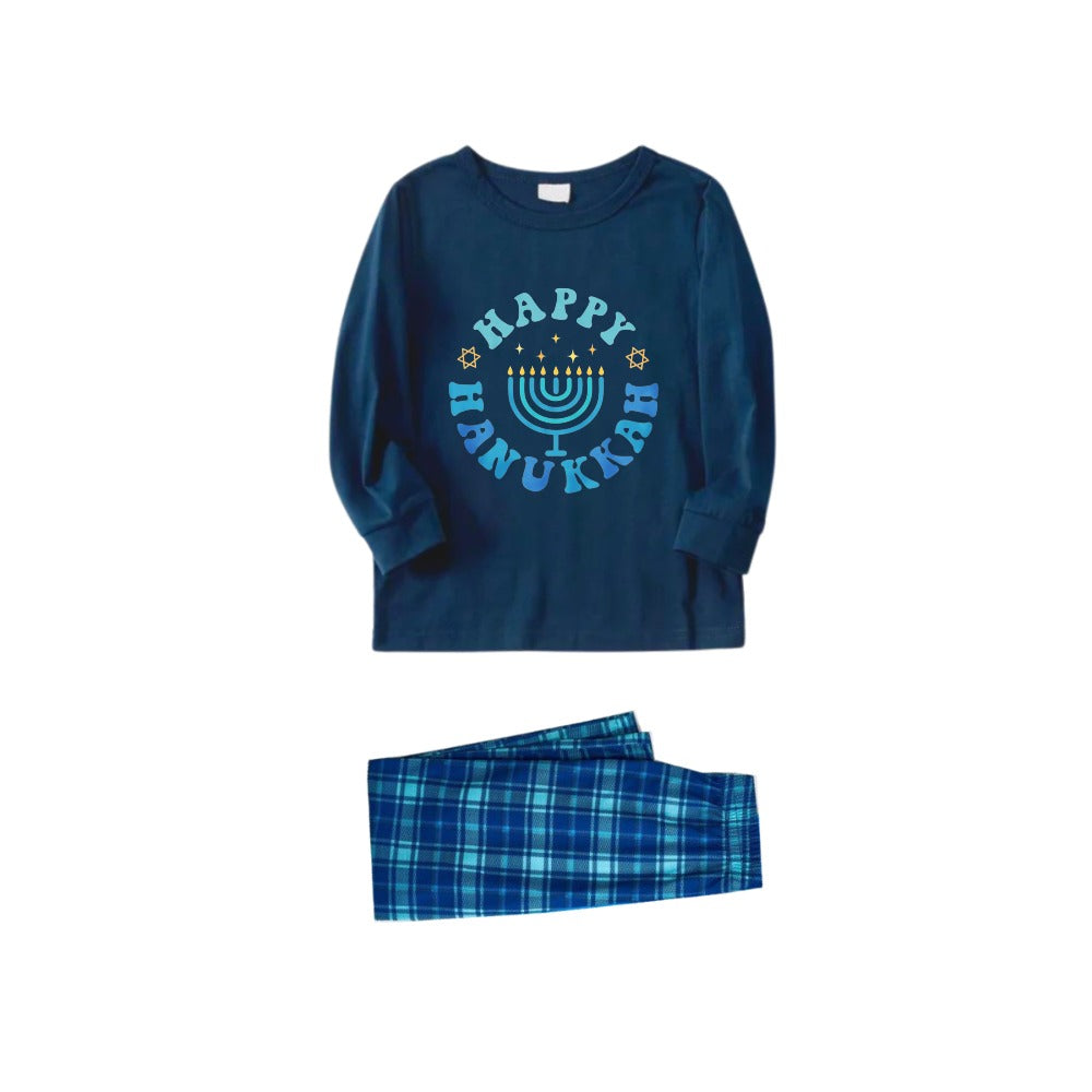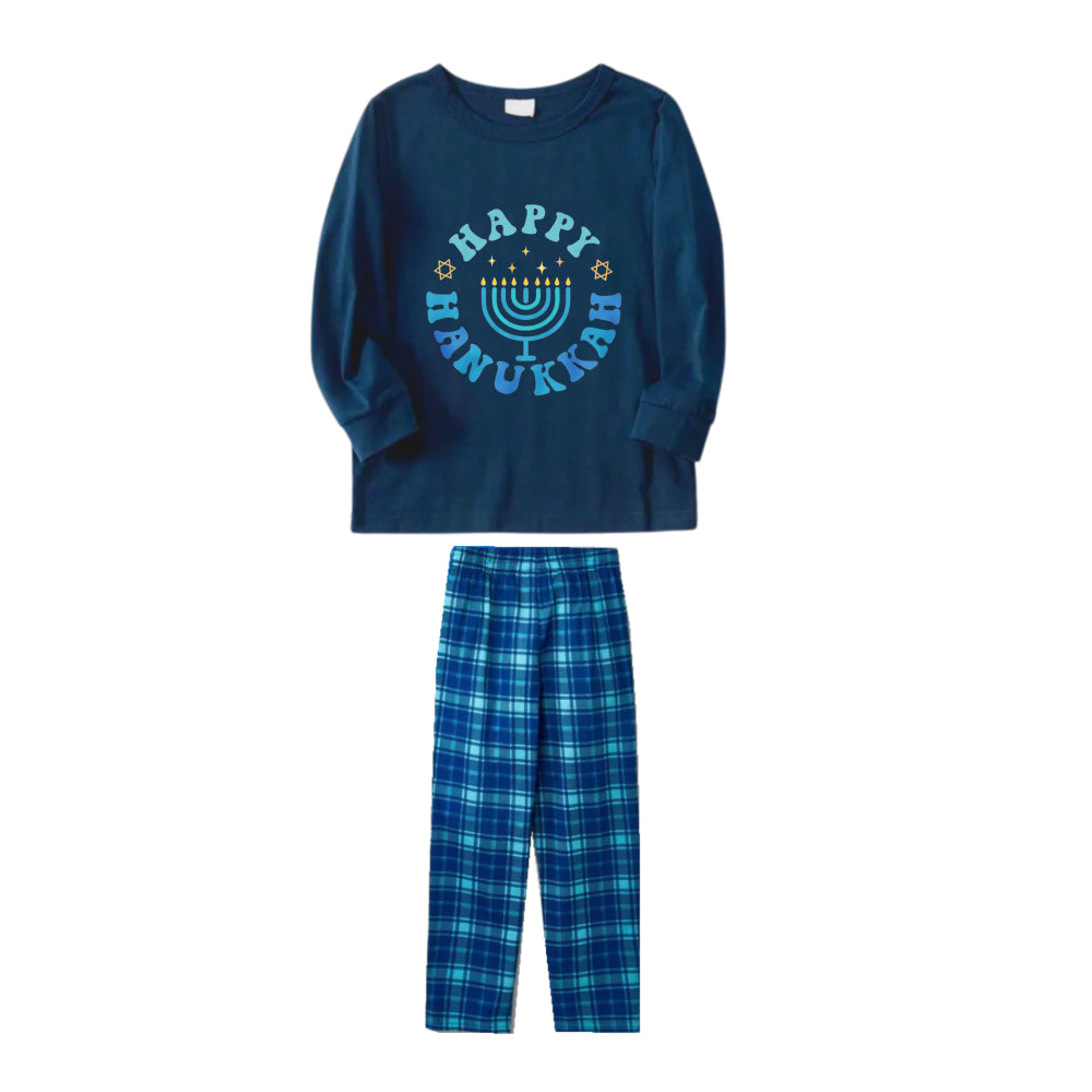 Family Hanukkah Blue Plaid Pajamas Set-Matching Holiday Sleepwear