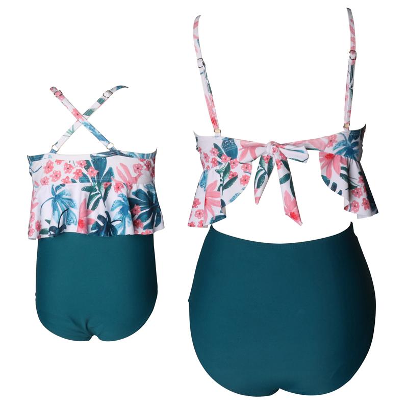 Flounce Mesh Swimsuits for Mommy and Me (Without headdress)-J2001-Green