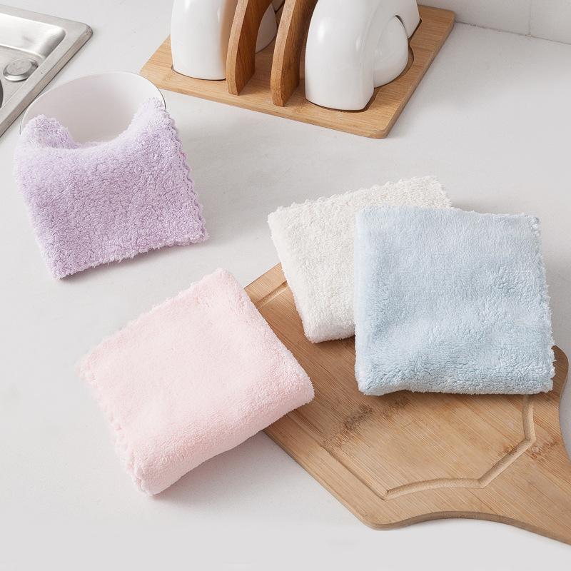 Kitchen Thick Coral Velvet Housework Cleaning Dish Towels Small Microfiber Square Cloth 10PCS