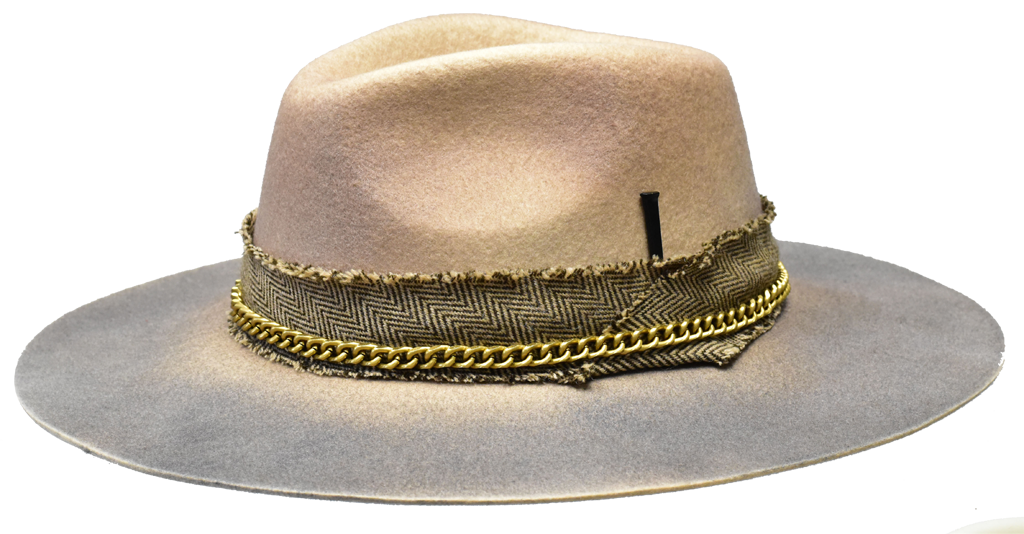 Feelin' a little edgy? Then, this hat is for you. Designed with a frayed band and a metal chain, this 3-inch wide brim hat will get you out of your fashion comfort zone...without going over-the-top. The body of the hat had a distressed effect so no 2 hats will ever look the same.