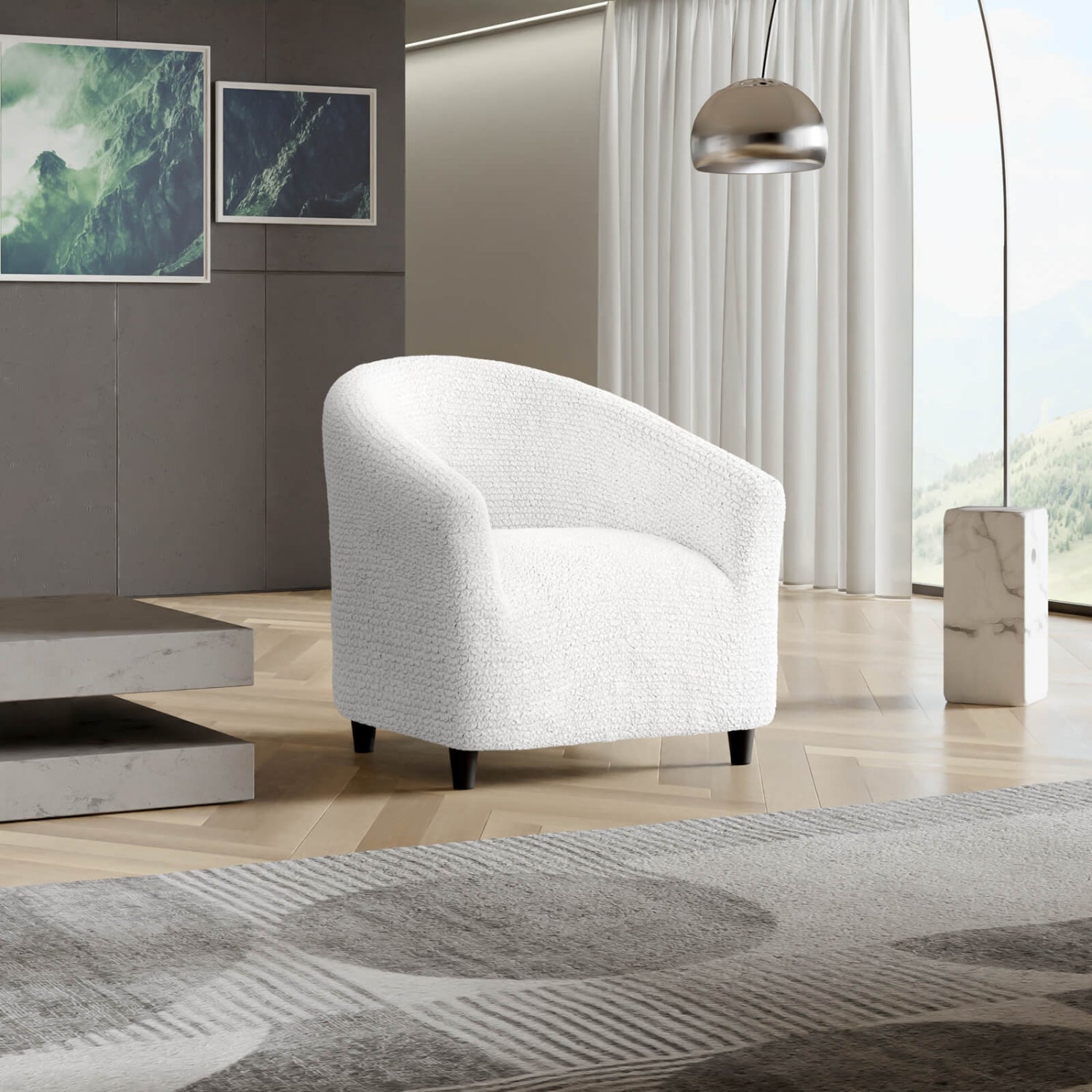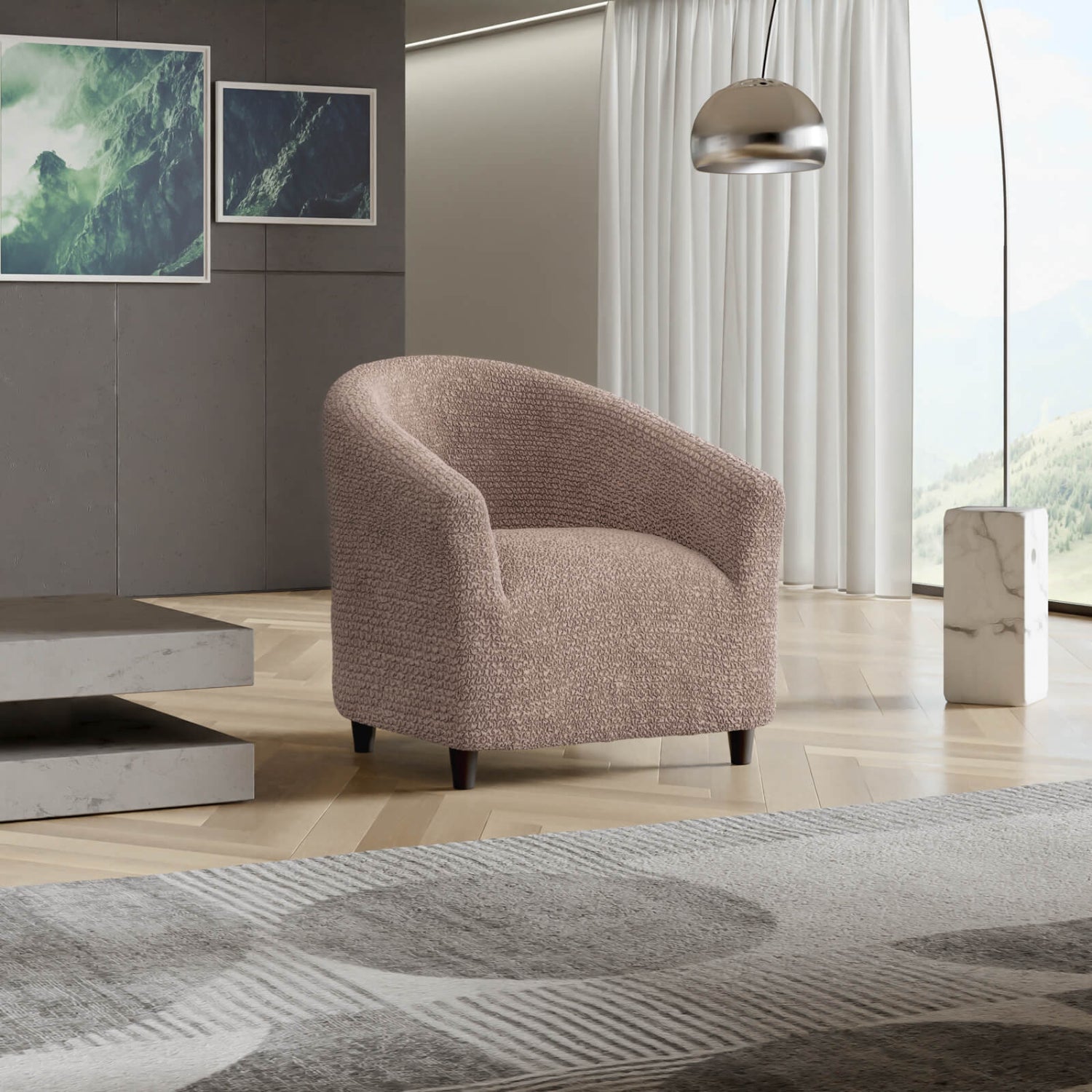 Barrel chair cover fits most chairs: Slipcovers are made of patented stretch bi-elastic fabric. Fitting barrel chair 20”- 27” wide. PLEASE MEASURE BEFORE PURCHASING.