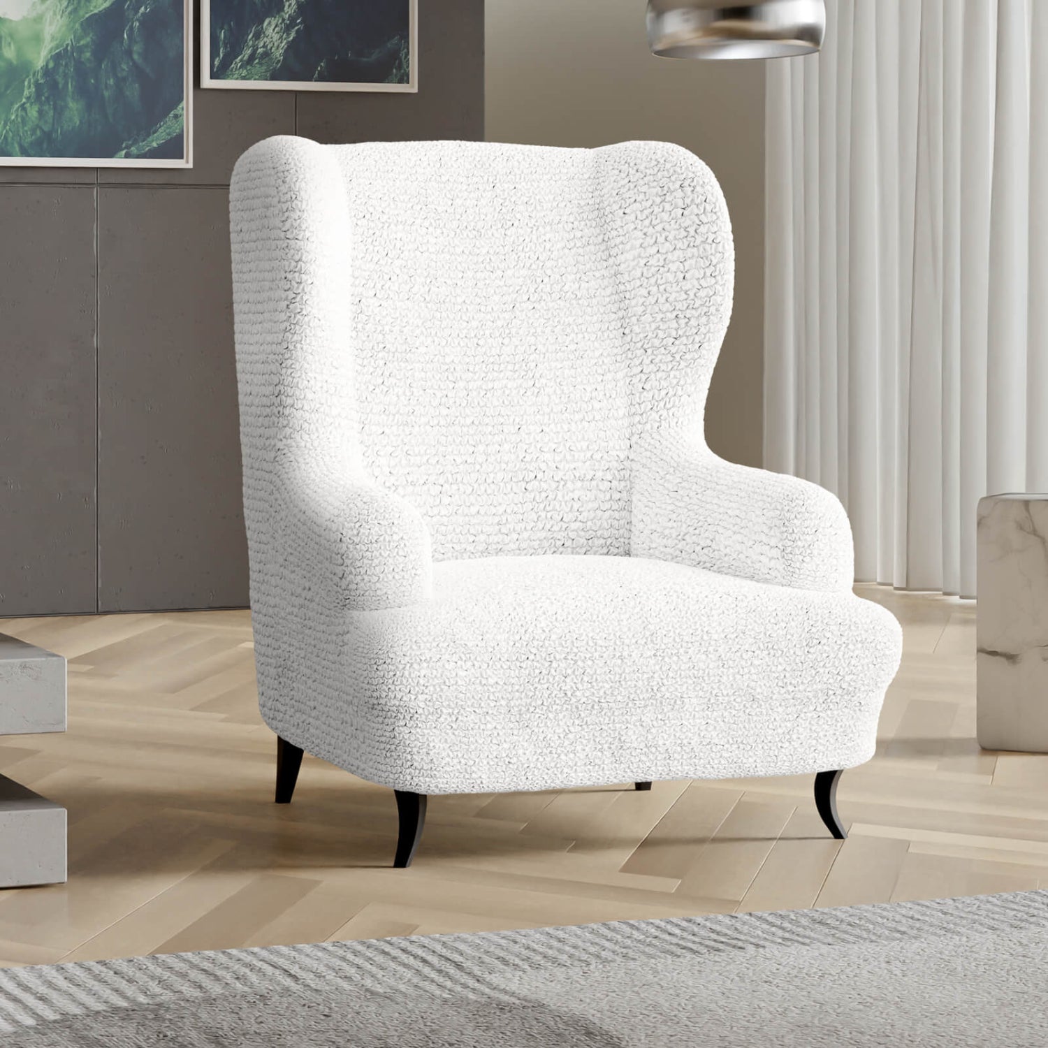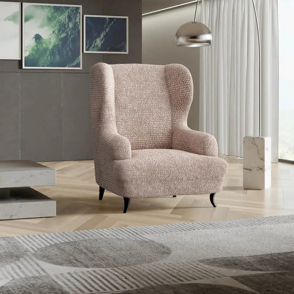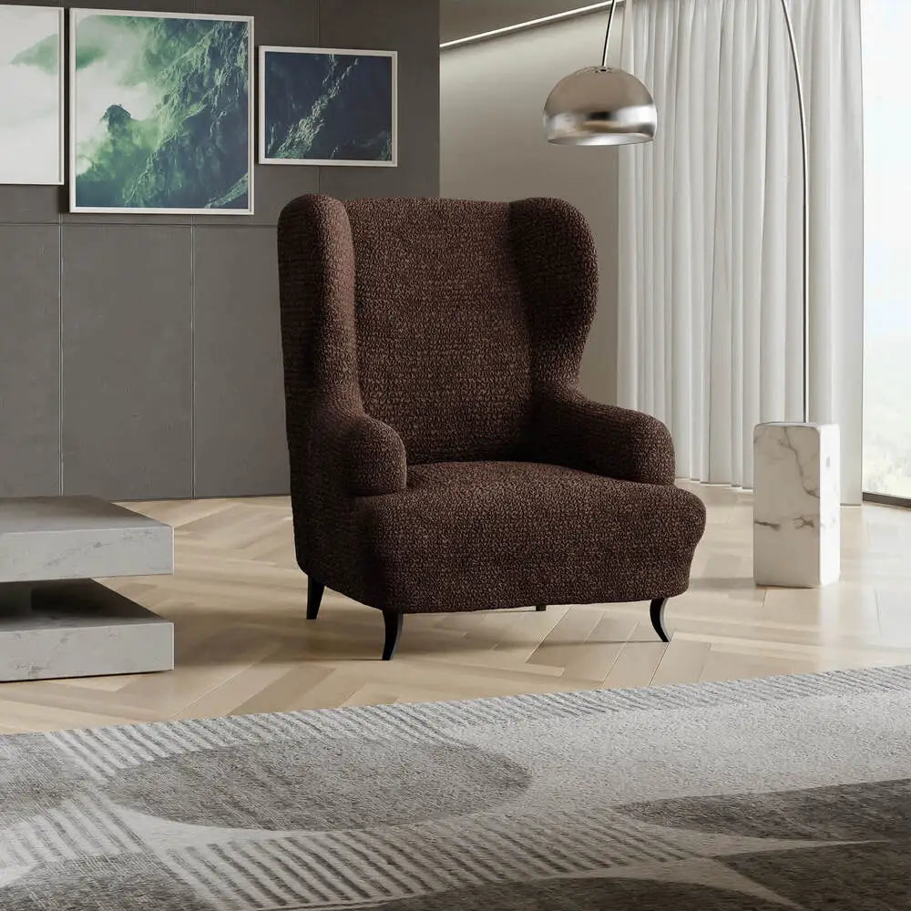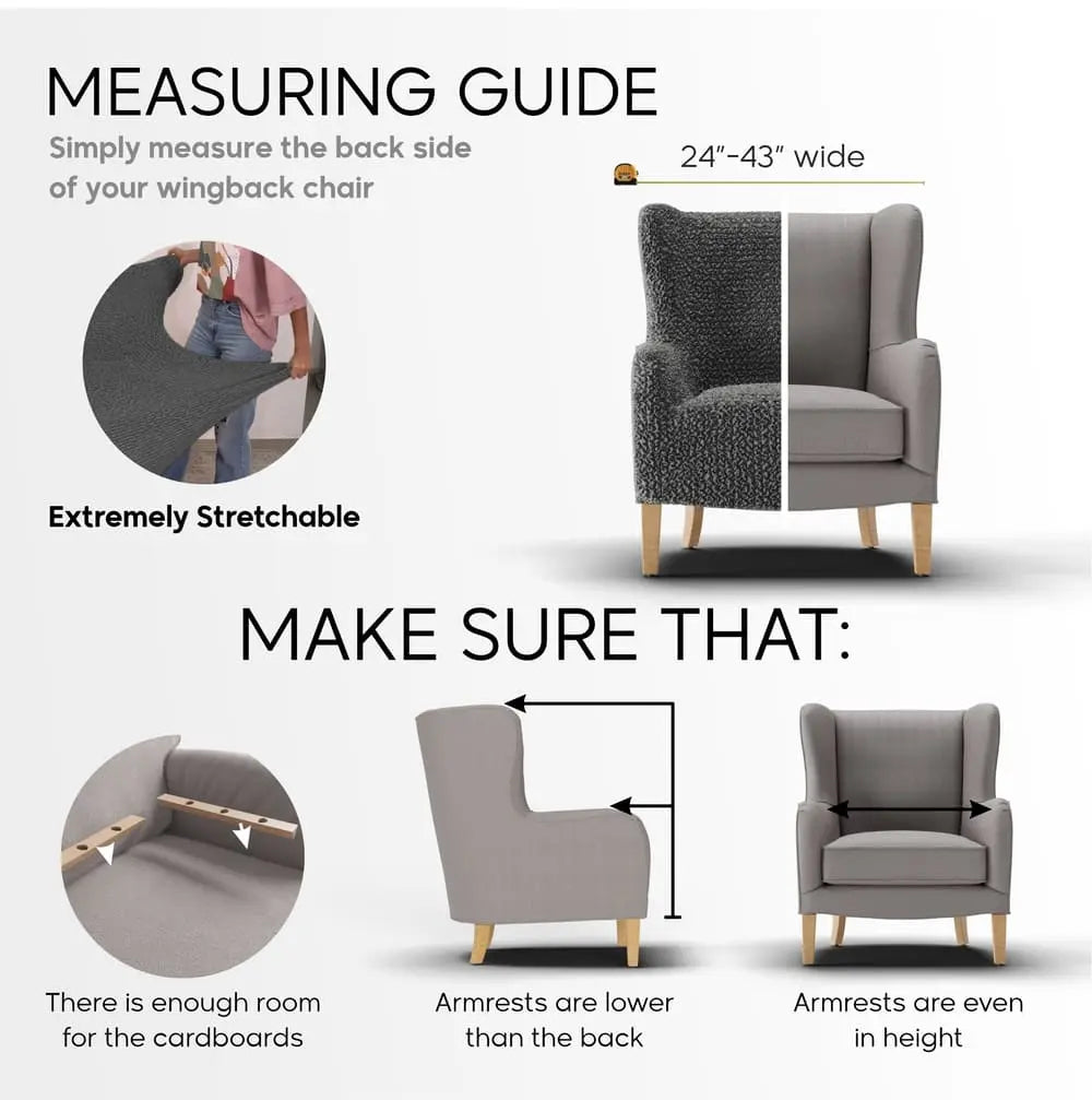Wingback chair cover fits most chairs: Slipcover is made of patented stretch bi-elastic fabric. Fitting wingback chair 24”- 43” wide. PLEASE MEASURE BEFORE PURCHASING.