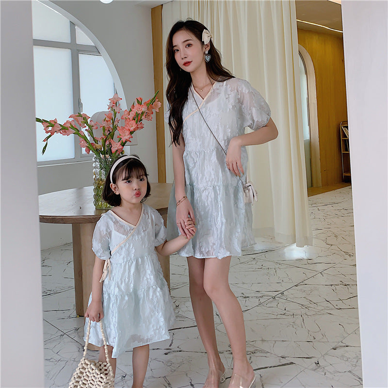 Mommy and Me Floral V-neck Ruffle Hem Dress