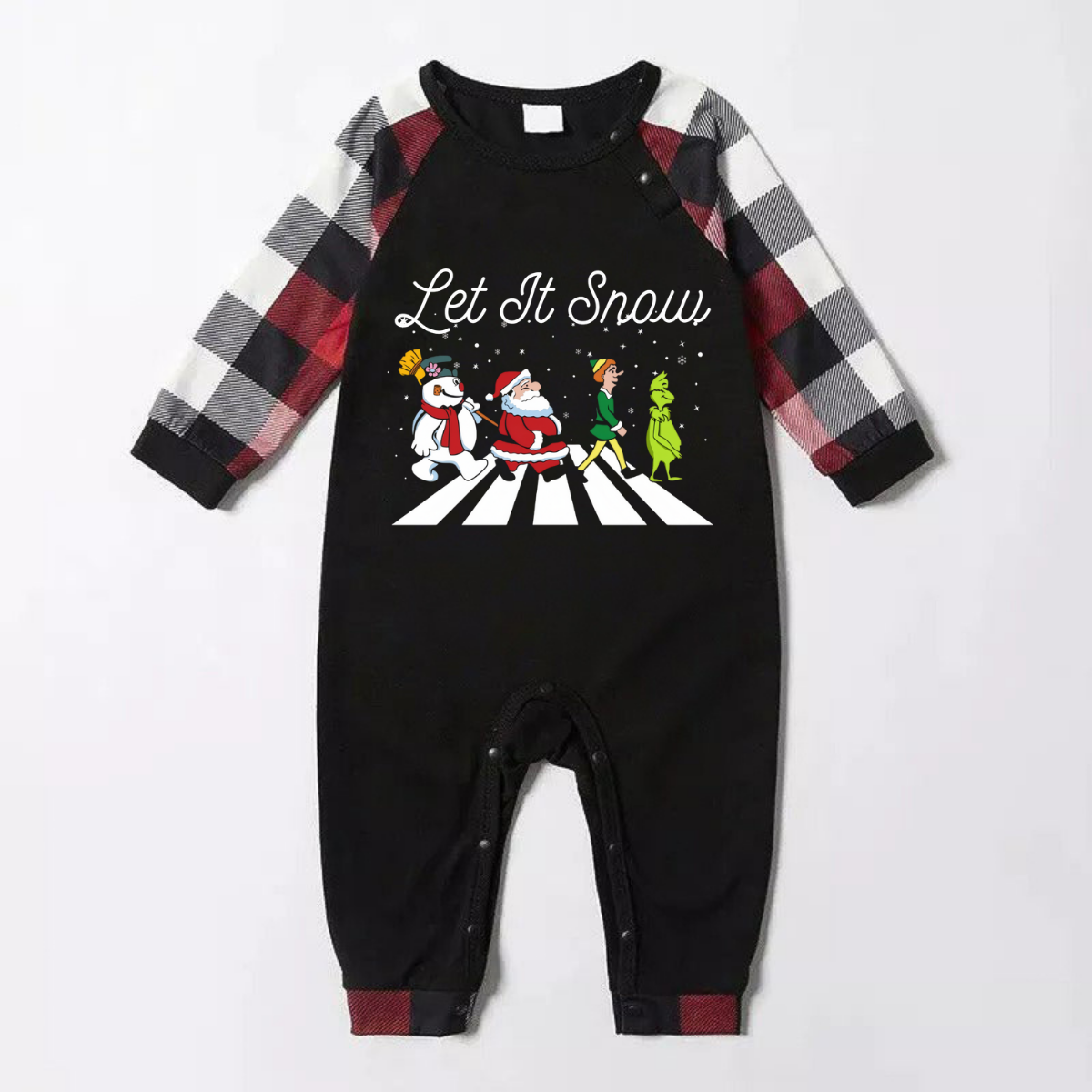 Red and Gray Plaid Christmas Pajamas Set with Santa Claus and Cartoon Pattern Print