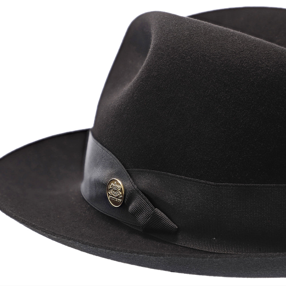 The Lucky Strike Stetson Wool & Fur blend Felt Fedora Hat is found exclusively only at Fashionable Hats. A new fedora amongst the Stetson collection makes this a quality of class of its own. Made in the USA from 95% wool and 5% fur. This hat gives off the impression of simplicity and class.