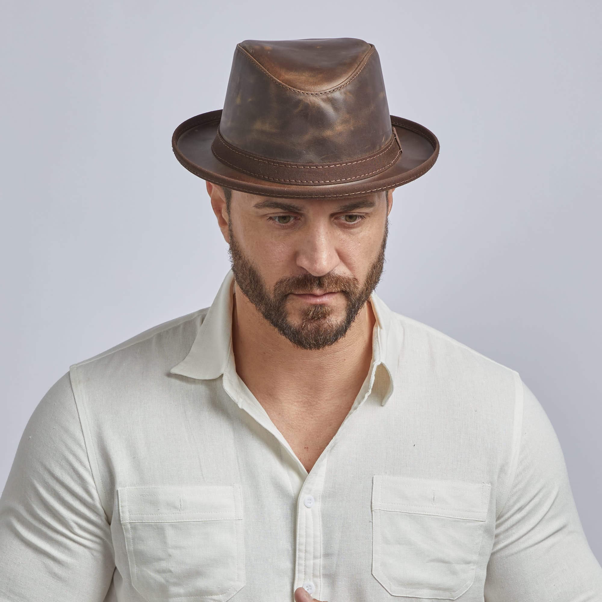 Need a leather fedora hat that can travel without losing its shape, and that looks great with any outfit at any venue? This nearly impossible combination of qualities is perfectly embodied by our Soho Leather Packable Trilby.