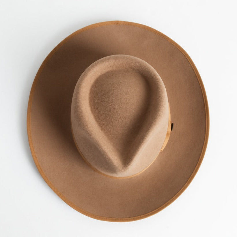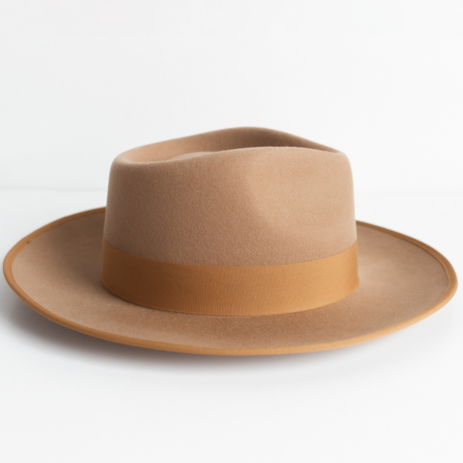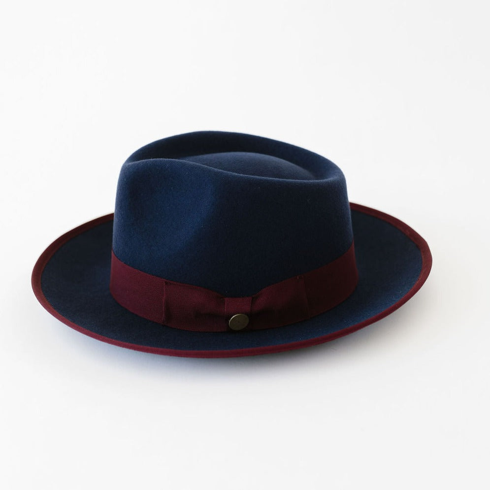 Crafted from premium quality wool felt. This sophisticated hat features a pinched crown, a trim brim, a high-quality sweatband for comfort, and a luxurious satin ribbon band adorned with a charming bow detail. Elevate your style with this elegant and refined accessory that combines classic craftsmanship with modern flair.