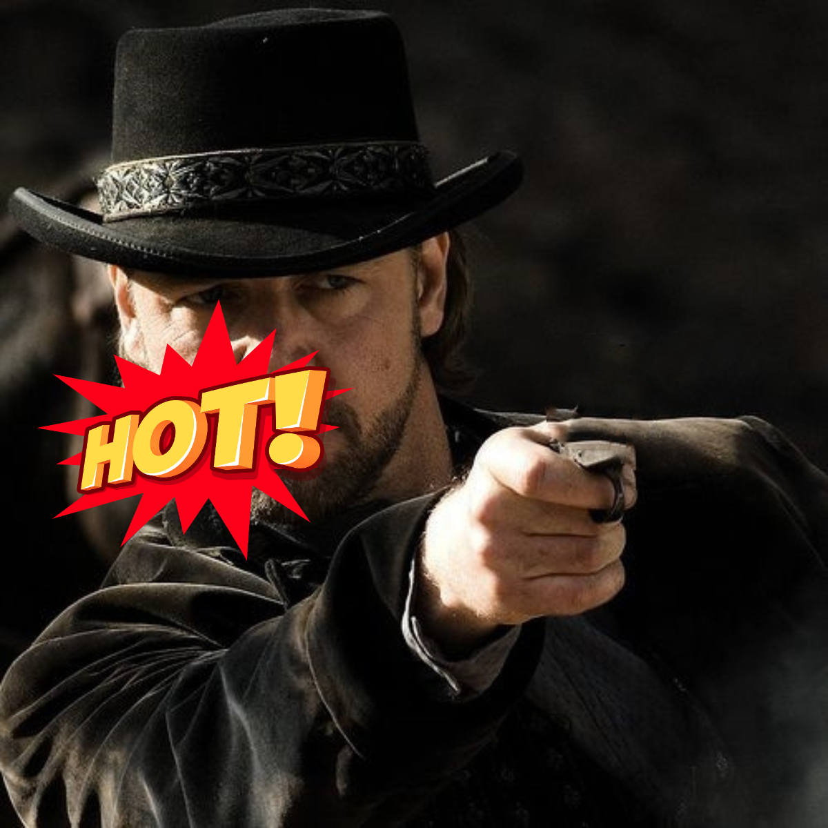 Russell Crowe as Ben Wade in the new version of 3:10 to Yuma wore a very common style in the 1860's to 1880's except that he had a unique hat band.  The low telescope crown and smallish brim was even worn by many confederate troops in the civil war. But, I must say that it never looked so good as with this unique band and worn by Russell Crowe. In 3:10 to Yuma Russell Crowe played a very serious and a very bad guy (with a spark of good) and his hat worked very well to reinforce that character. If you haven't seen the new 3:10 to Yuma yet, you should. It's a very good story and Russell Crowe really delivered for us in his portrayal of Ben Wade.