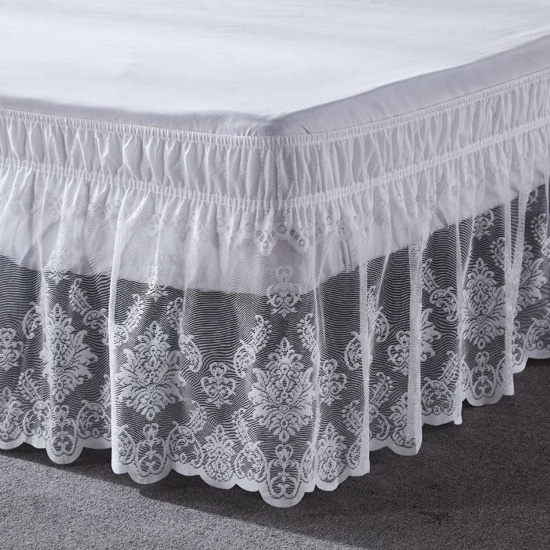 White Embroidered Bed Skirt Elastic Band Bed Skirt