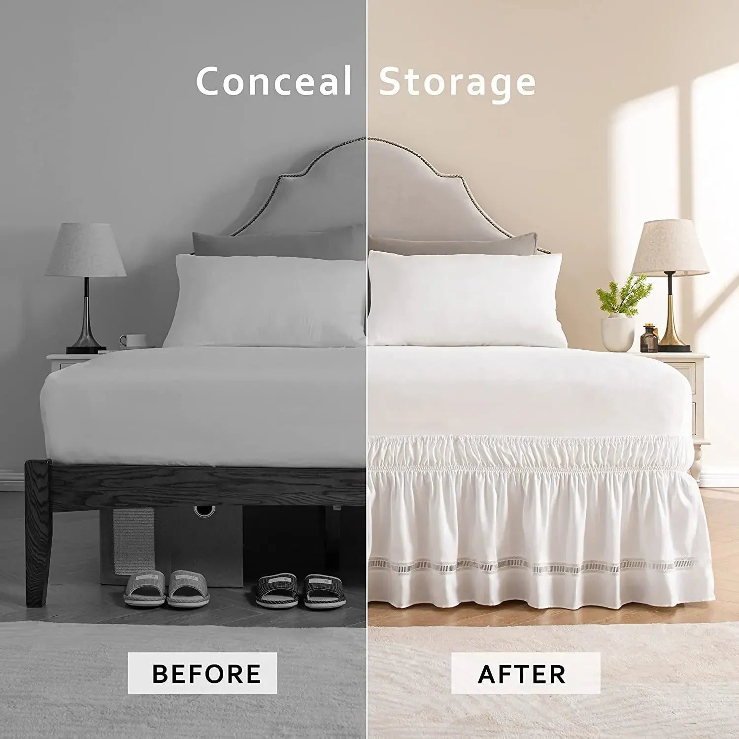 Wrap Around Ruffles Bed Skirt with Adjustable Belts