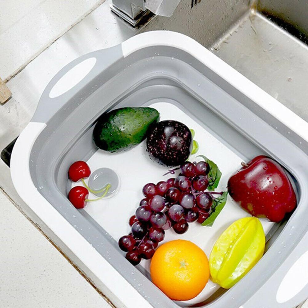4 IN 1 Multifunction Collapsible Cutting Board Drain Basket Vegetable Basin Portable Tub For Kitchen Fruit Vegetable Washing
