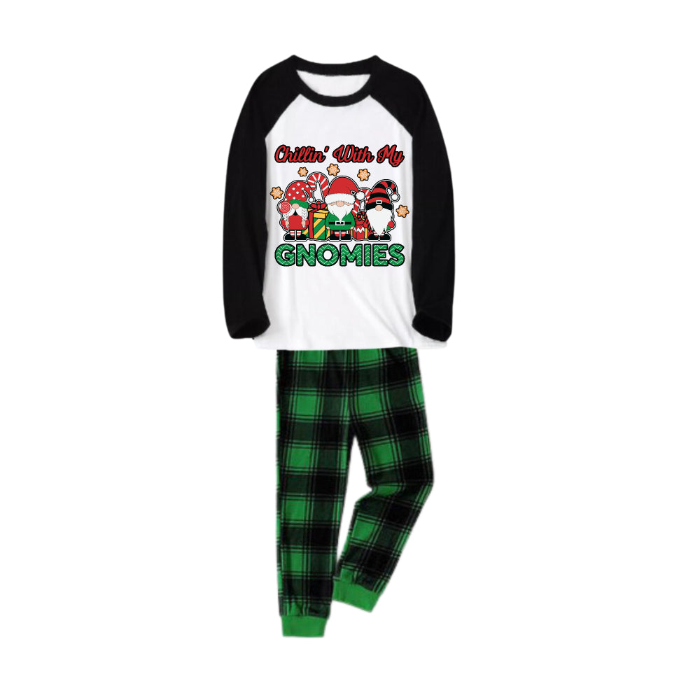 Black Raglan Top Green Plaid Christmas Pajamas Set With Cute Gnome and Holiday Text