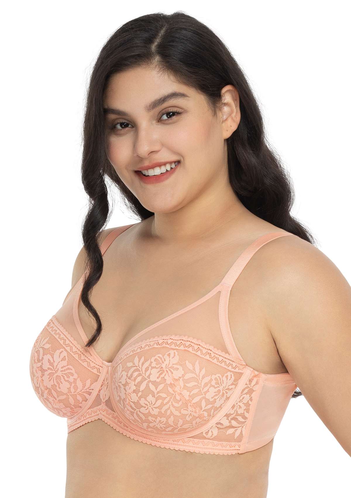 Gladioli Peach Lace Unlined Underwire Bra Set 0525