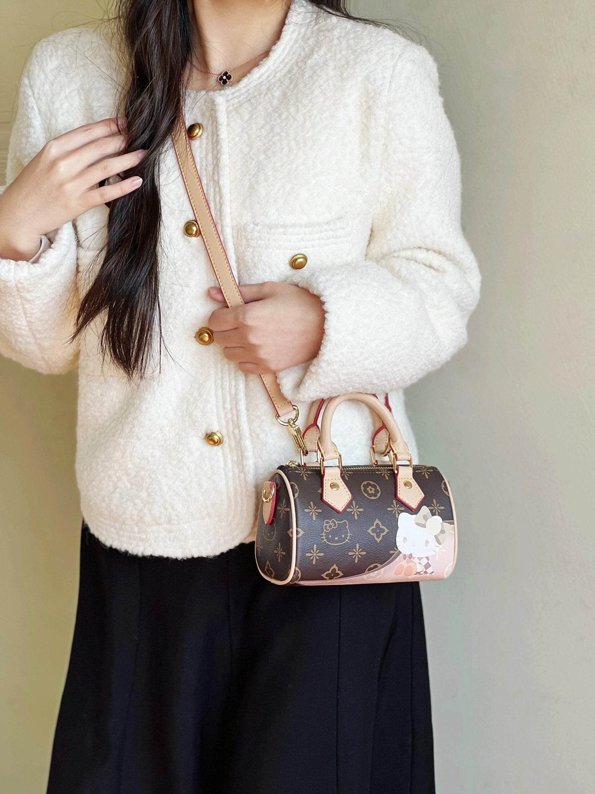 The Hellokitty Mini Purse Bag is a delightful and versatile accessory that can be used as a mini top handle clutch, crossbody handbag, or even a lipstick bag. This mini purse is perfect for carrying your essentials in style while showcasing your love for Hello Kitty. Its compact size makes it ideal for on-the-go use, and its cute design adds a touch of charm to any outfit. The Hellokitty Mini Purse Bag is a great choice as a gift for ladies who appreciate adorable accessories and want to add a fun element to their look. Treat yourself or someone special to this cute and practical accessory that is sure to bring a smile to their face.