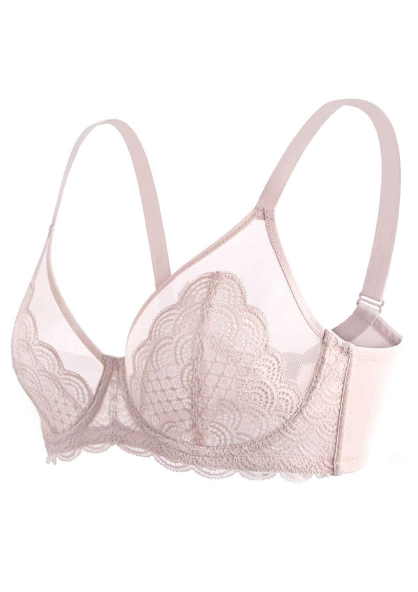 • Stretch scalloped lace overlay at center and bottom cup