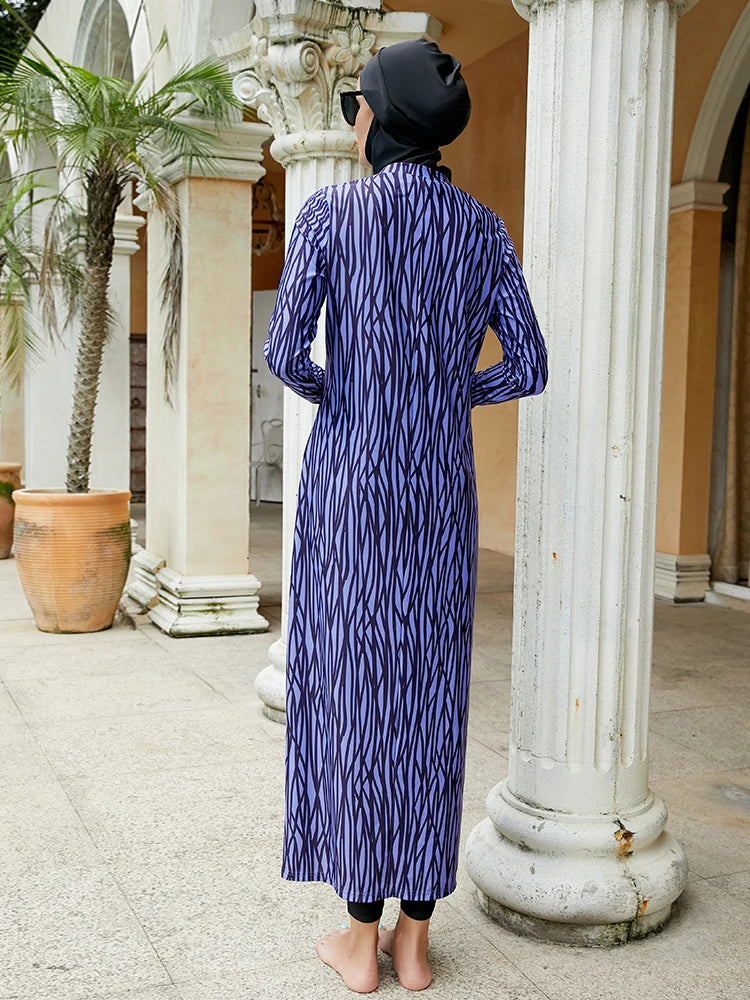 Indulge in graceful modesty with our Women's Muslim Burkini, featuring a Hair Hood Cap for added elegance. This Mujer swimwear ensemble is meticulously crafted for the modern woman seeking both style and complete coverage. Ideal for beach outings or poolside relaxation, this Modest Islam Burqini includes an Islamic Hijab, ensuring a sophisticated and comfortable full-coverage suit. Elevate your swimwear collection with this chic and modest Burkini, where fashion meets tradition in the most elegant way. Step into the waves or lounge by the beach with confidence in this timeless beachwear ensemble.