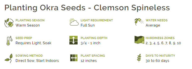 The "Clemson Spineless" was an All-America winner way back in the late 1930's. Use this delicious okra fried, in soups, stews, and gumbos. Like all okra, the Clemson Spineless vegetable seeds thrive in warmer climates, but can also be planted effectively up north!