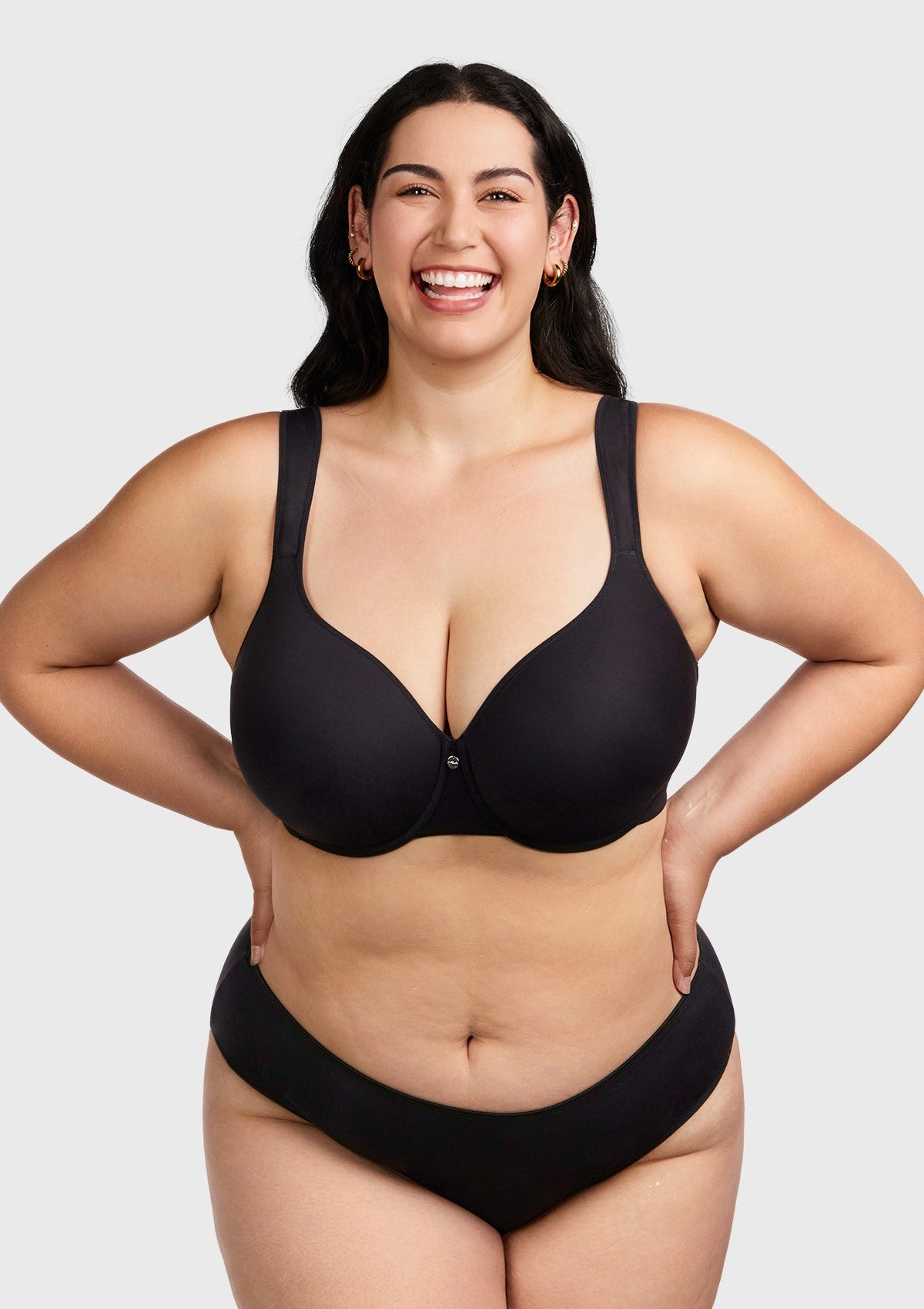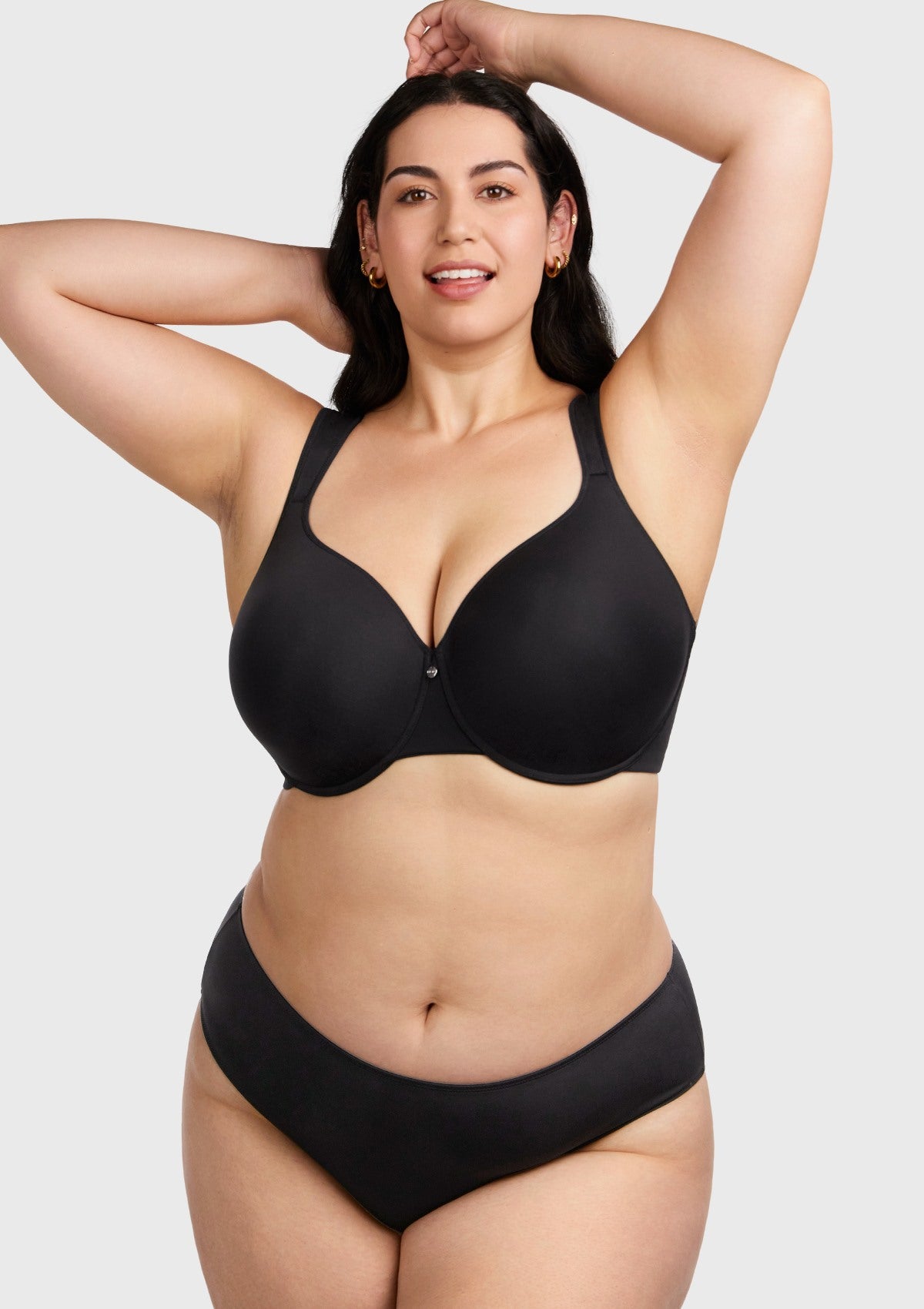 Your next go to T-shirt Bra, designed for plus size women. Super stretchy and smoothing fabric offers you a second-skin feeling. Full coverage and good support for a comfortable fit with a minimizing effect. Wider memory foam straps stay in place and will not dig in. U shape back design helps reduce bulges for a smooth silhouette.