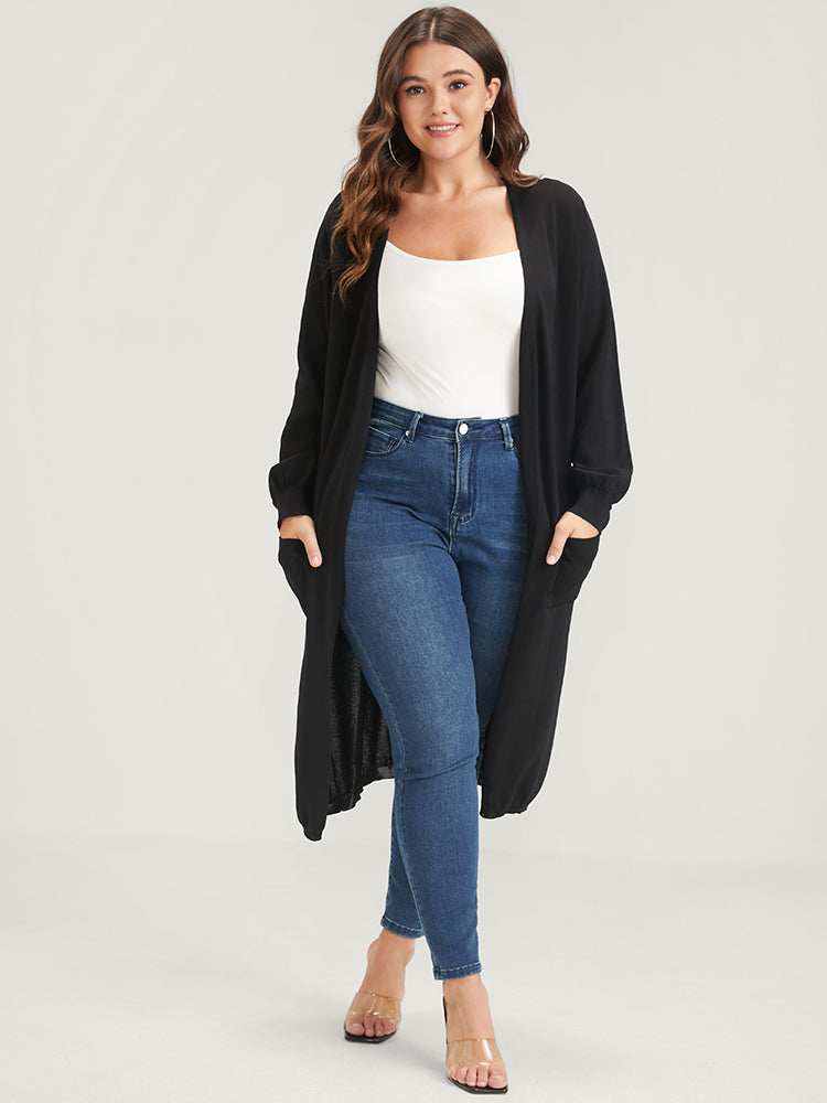 Plain Pocket Sexy Yarn Knit Open Front Long Cardigan Pre-fall