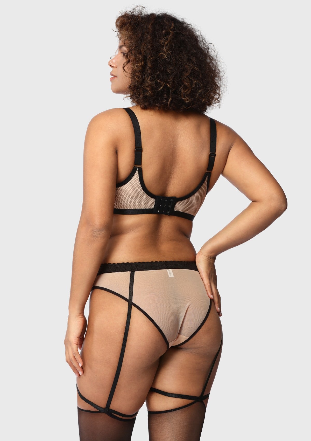 Introducing our Punk Chic Strappy Unlined Balconette Bra-a mesmerizing blend of rebellion and elegance. Its abstract orgy dances along the neckline, while the double-Layered blush mesh cup design offers divine lift and contrast with sharp black detailing. Delicate embroidered patterns add a touch of suspense, revealing body shapes in a truly wild fashion. Elevate your lingerie collection with this daring and sophisticated piece.