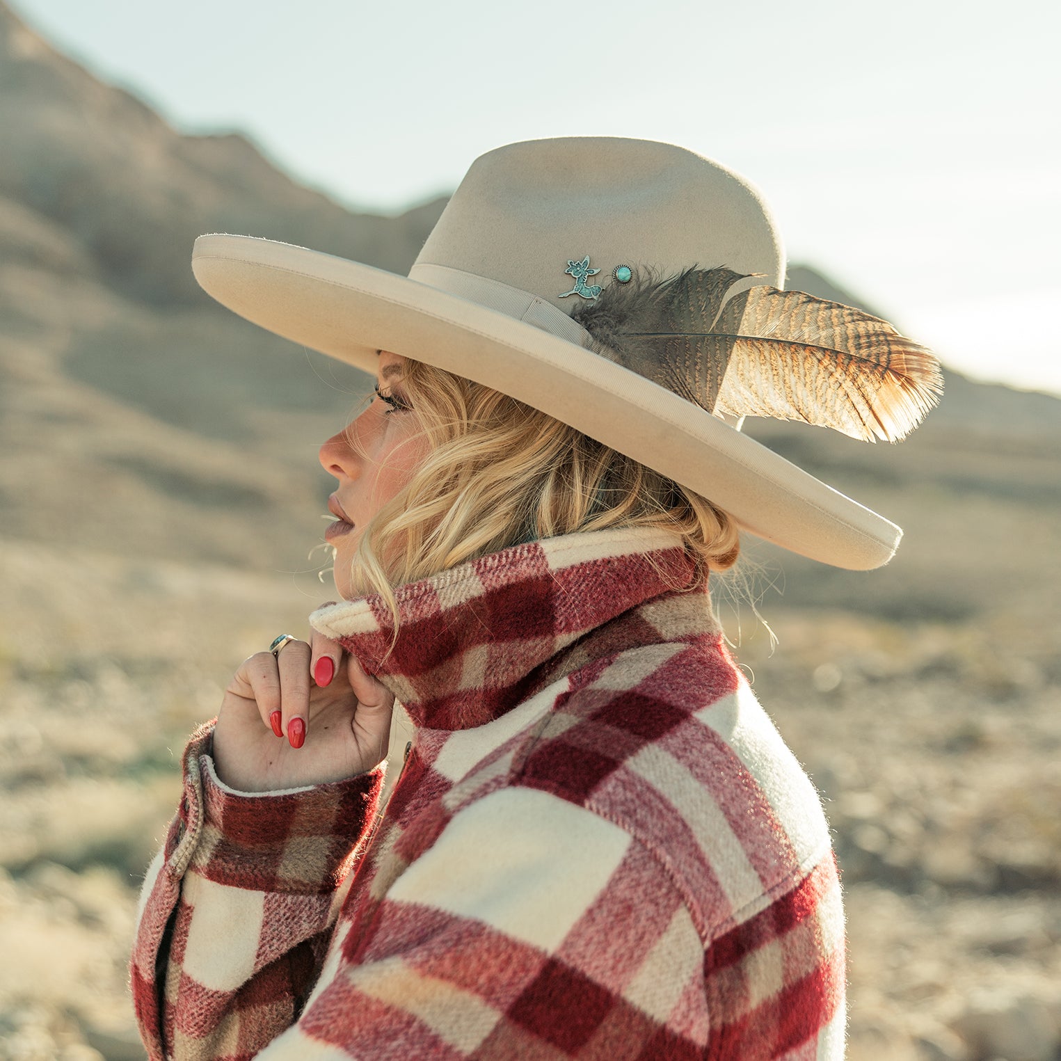 The Tom Mix 6X Cowboy Hat is constructed of 6X quality fur felt and features a bound edge brim, Gus crease crown, grosgrain hat band and a brown leather interior sweatband. 6X Quality Fur Felt.