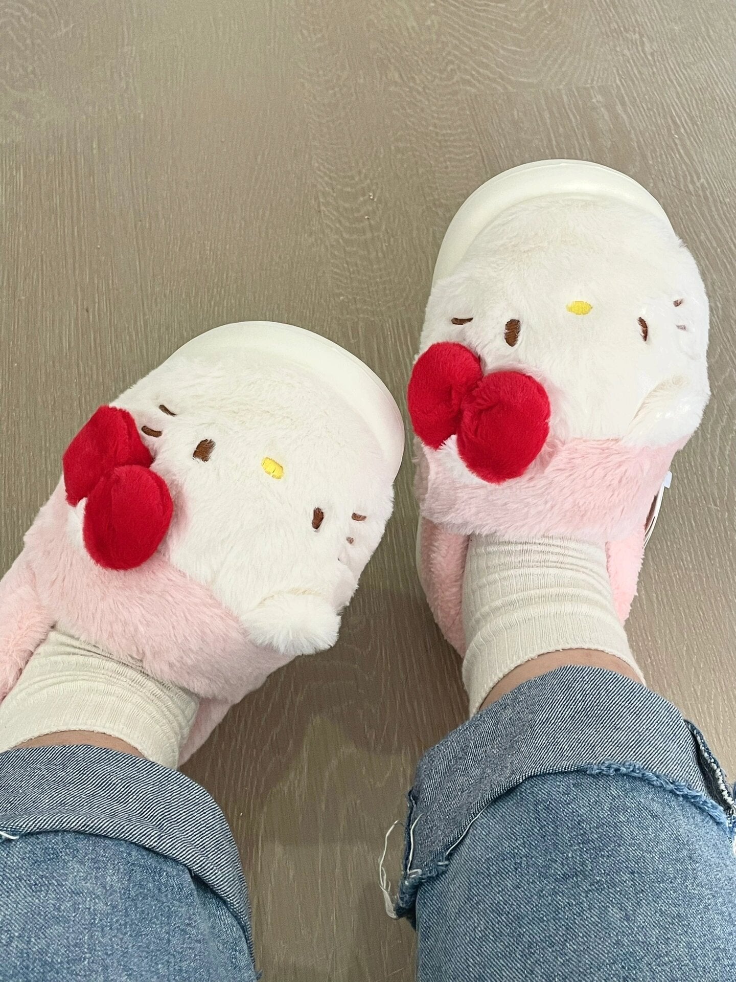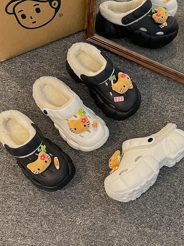Hellokitty Fur Lined Clogs Waterproof Winter Fuzzy Slippers for Women Indoor Outdoor