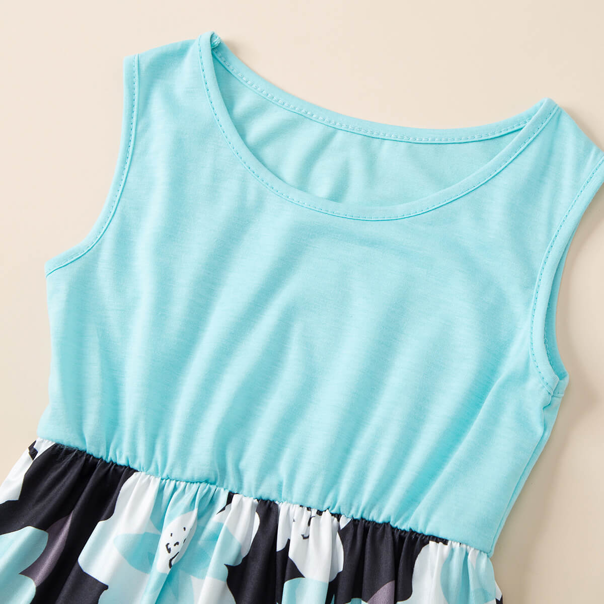 Splice Sleveless Matching Dress and Top for Family Matching