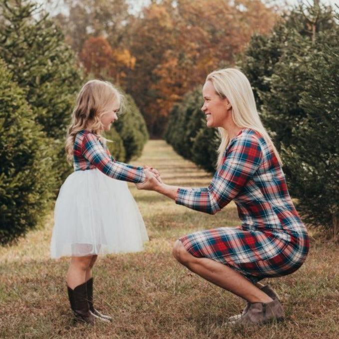 Blue Plaid Casual Style Matching Dress for Mommy and Me