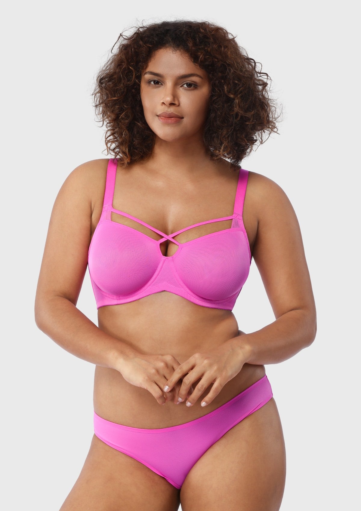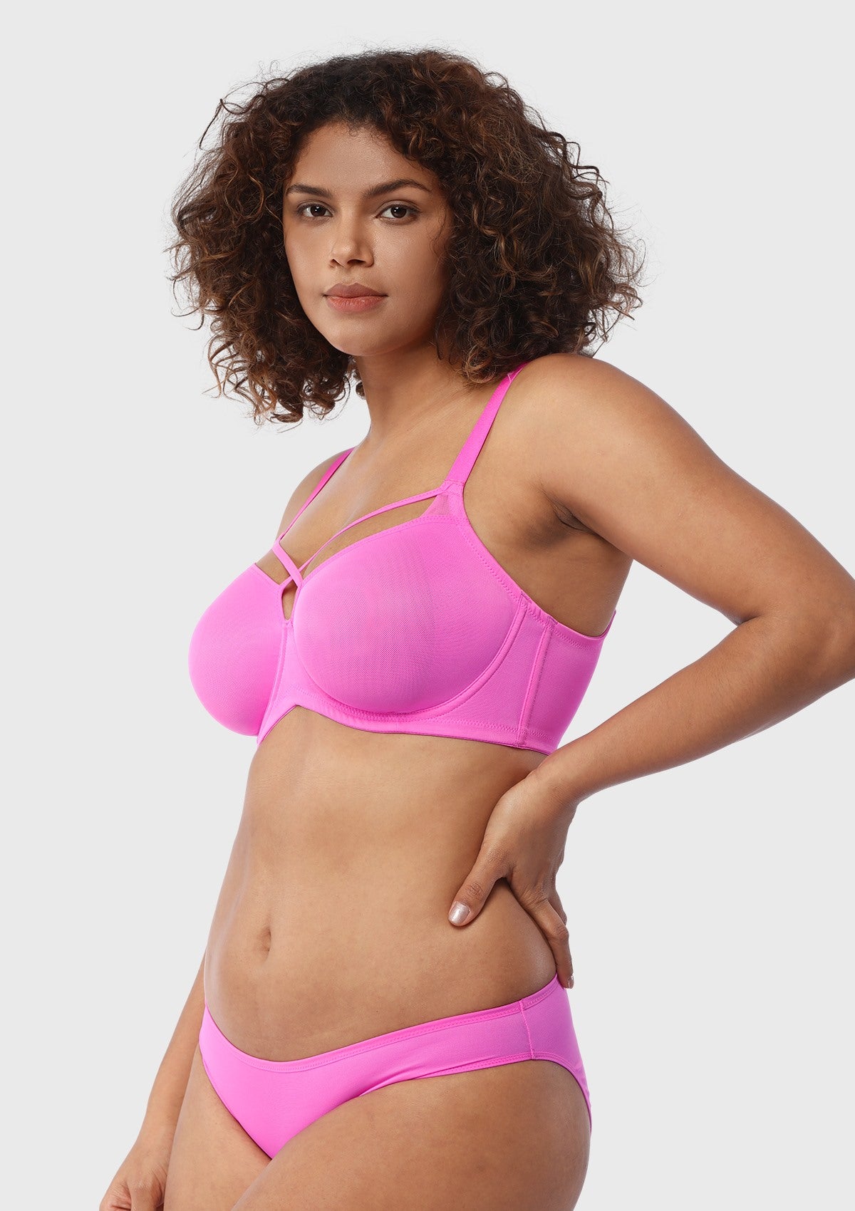 Billie Cross Front Strap Barbie Pink Smooth Sheer Mesh Underwire Bra 0525