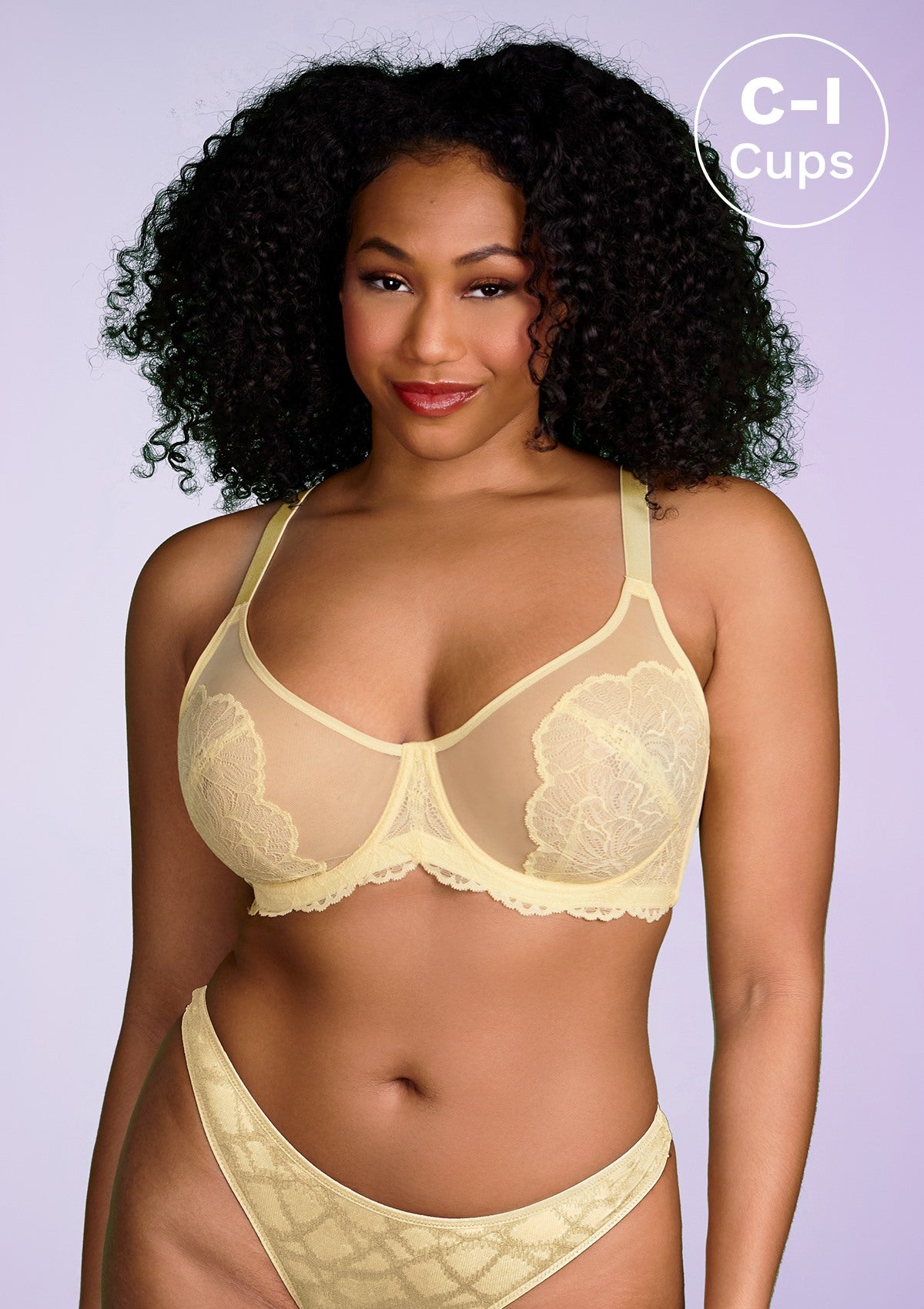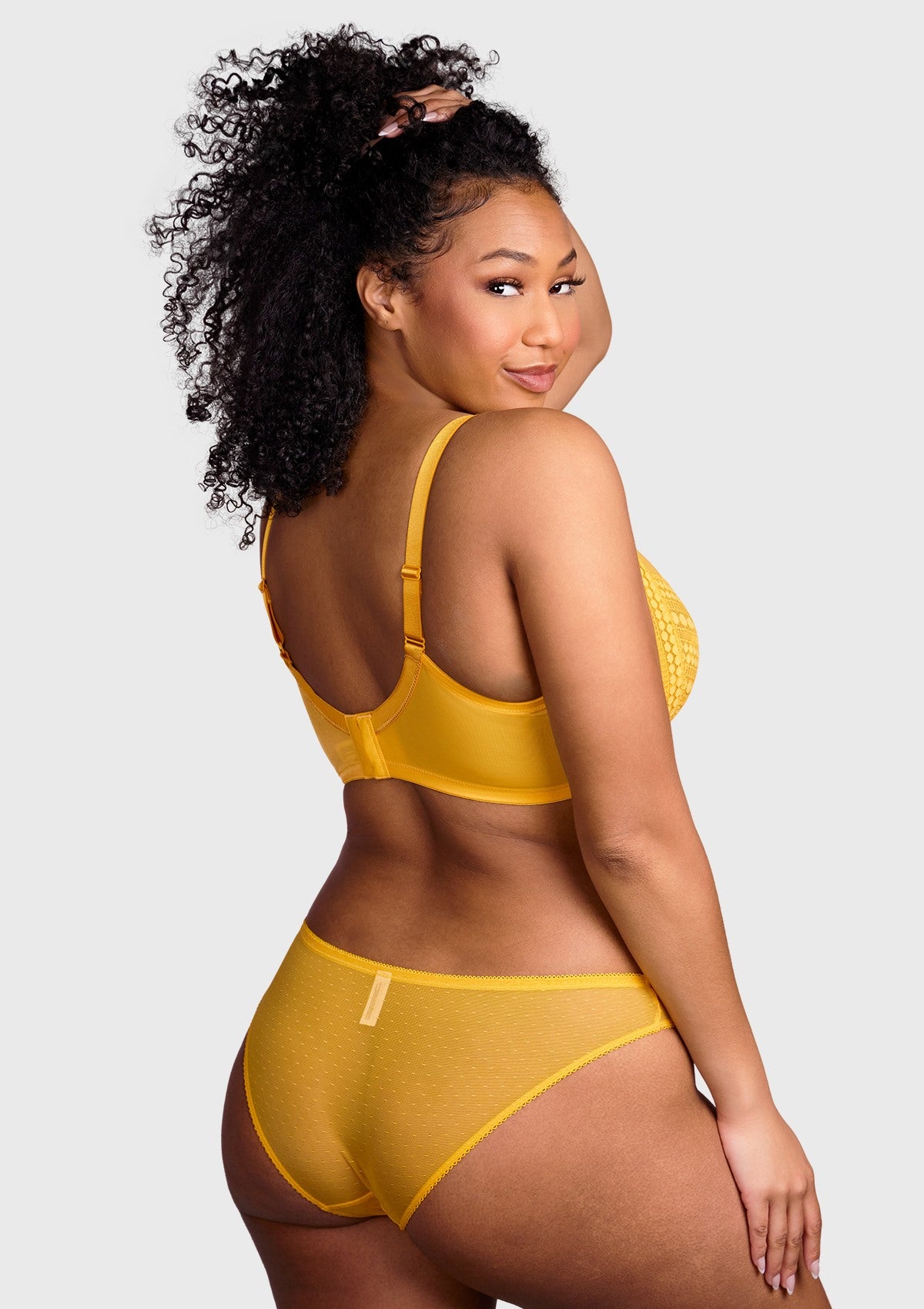 Billie Cross Front Strap Yellow Smooth Sheer Mesh Underwire Bra Set 0525