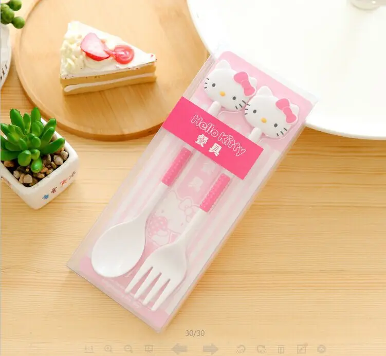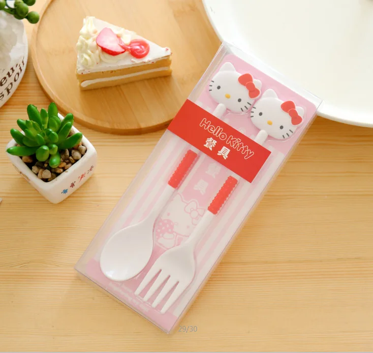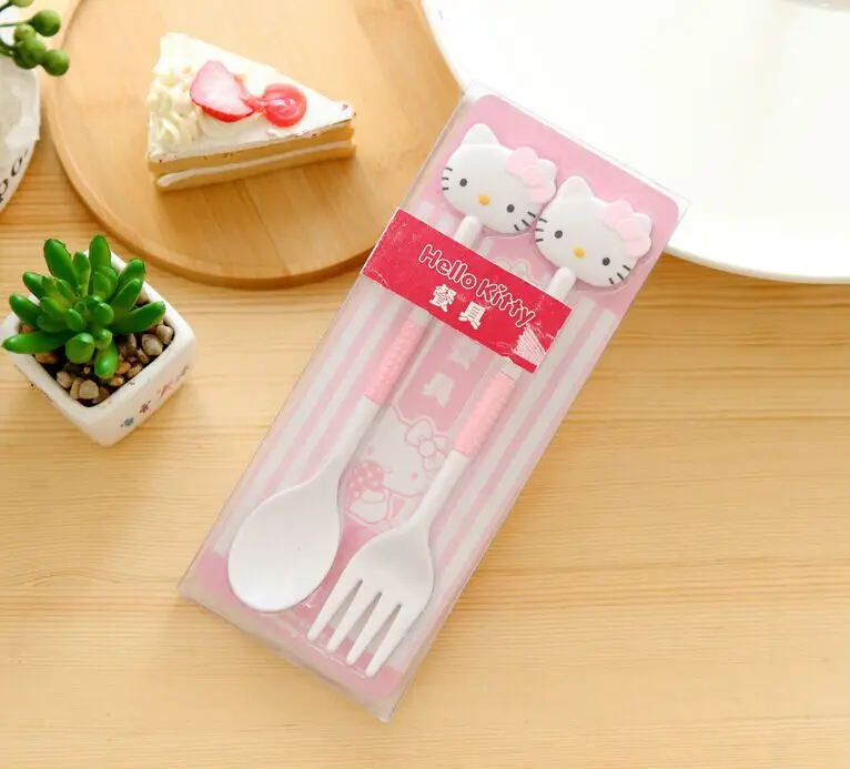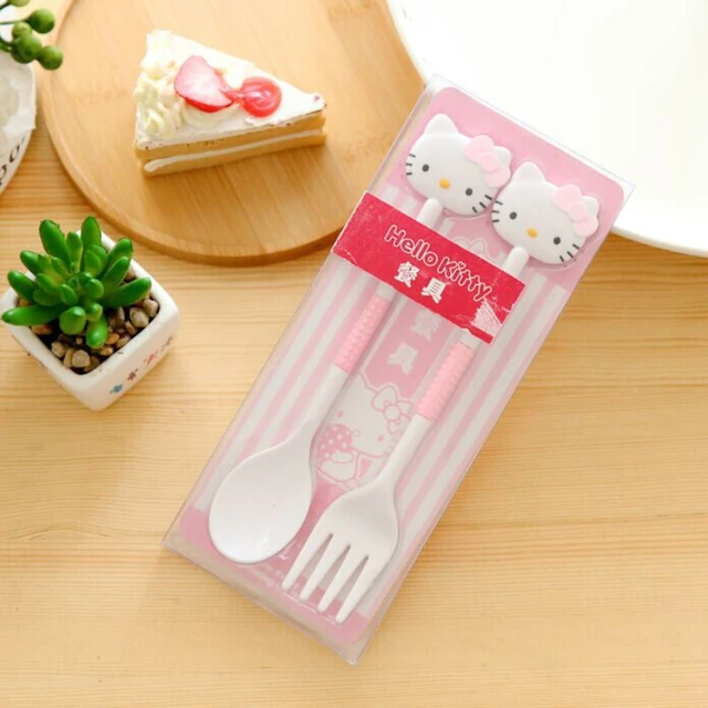2PCS/Set Sanrio Hello Kitty Spoon Fork Baby Girls Feeding Tableware Children Travel Portable Dinnerware Kitchen Accessories Gift