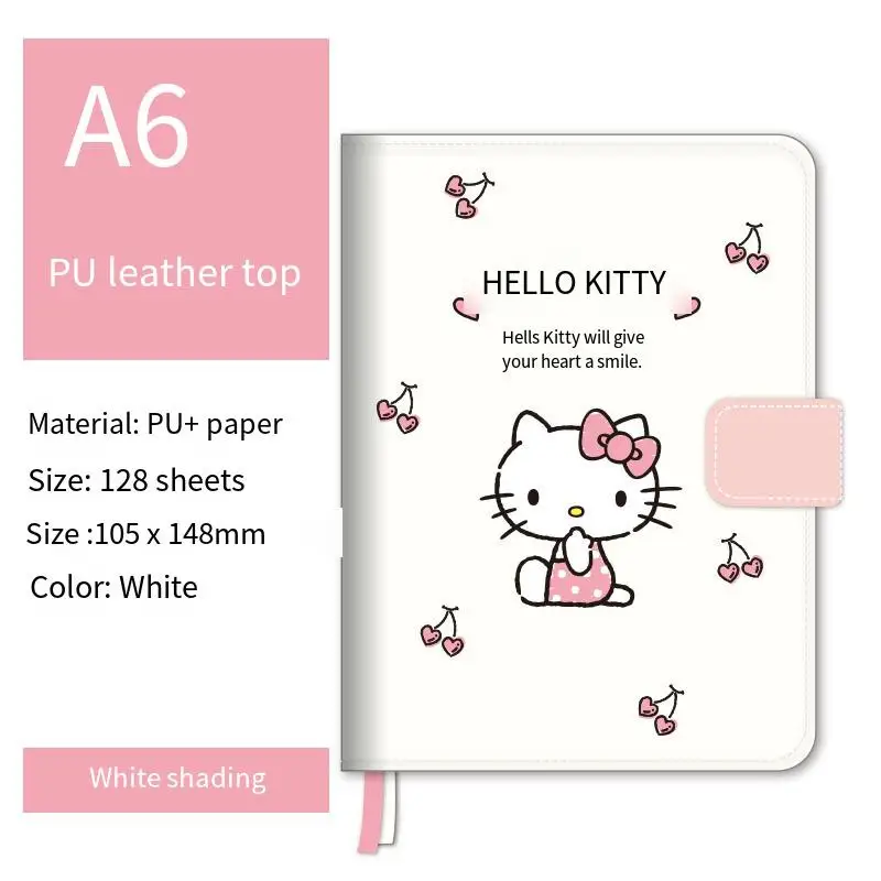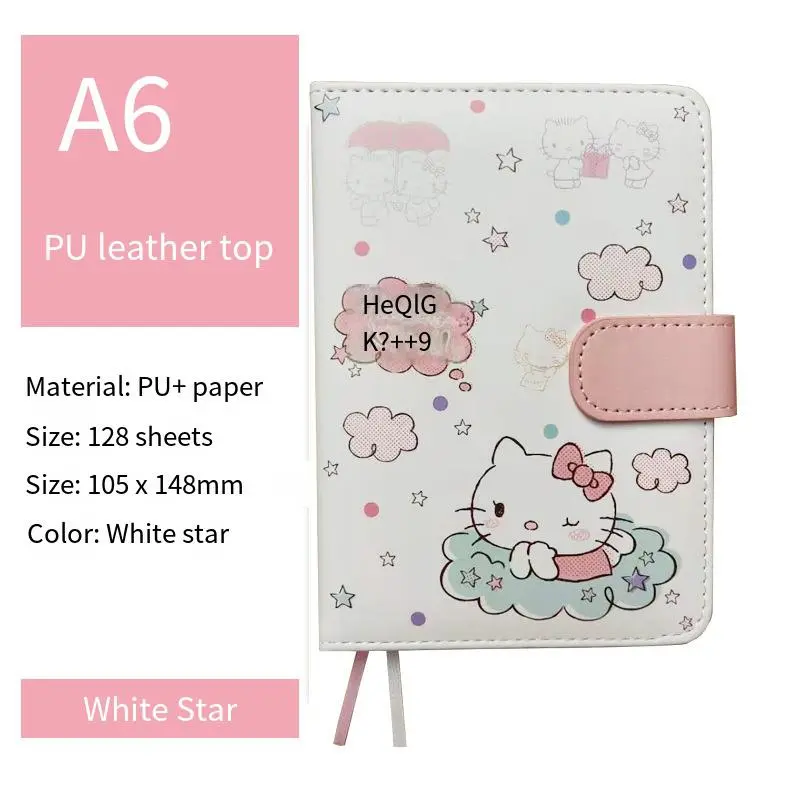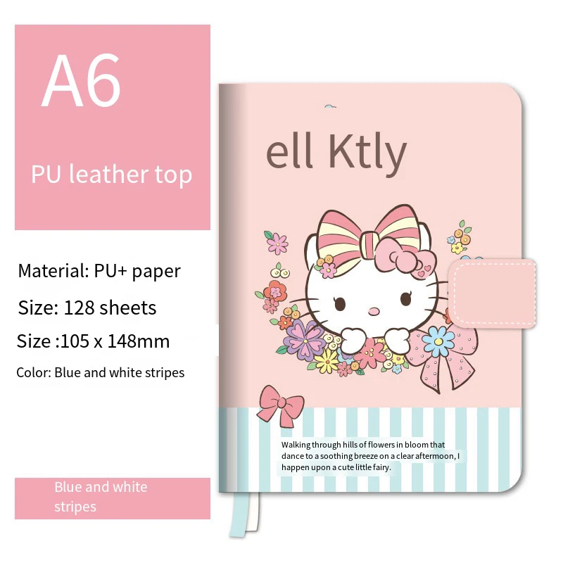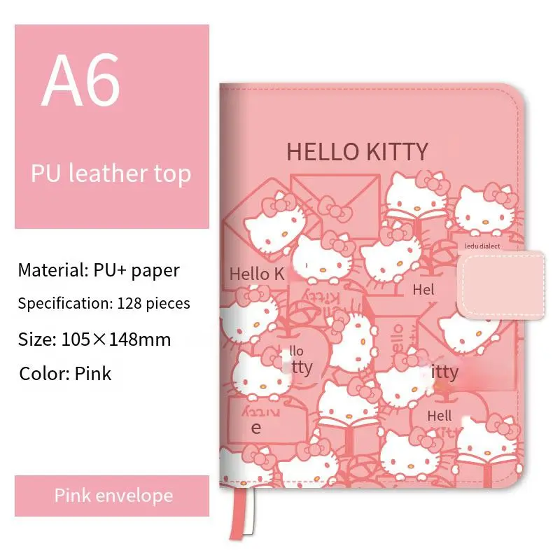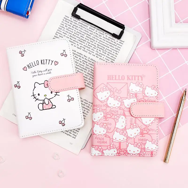 A6 Cute Hello kitty Sanrio Anime Leather Magnetic Buckle Notebook Student Planner Write Office Portable Kawaii School Stationery