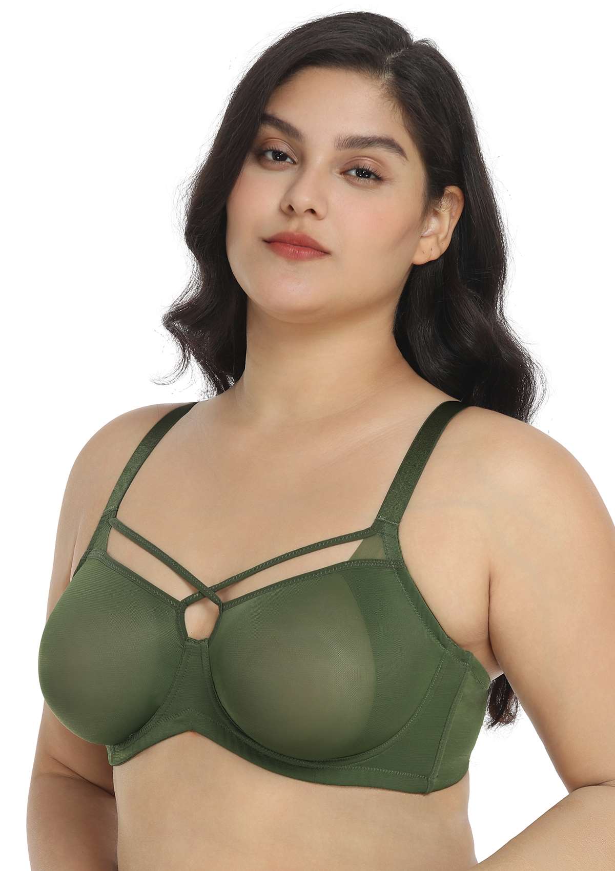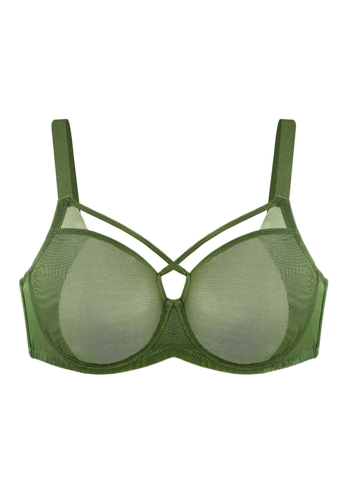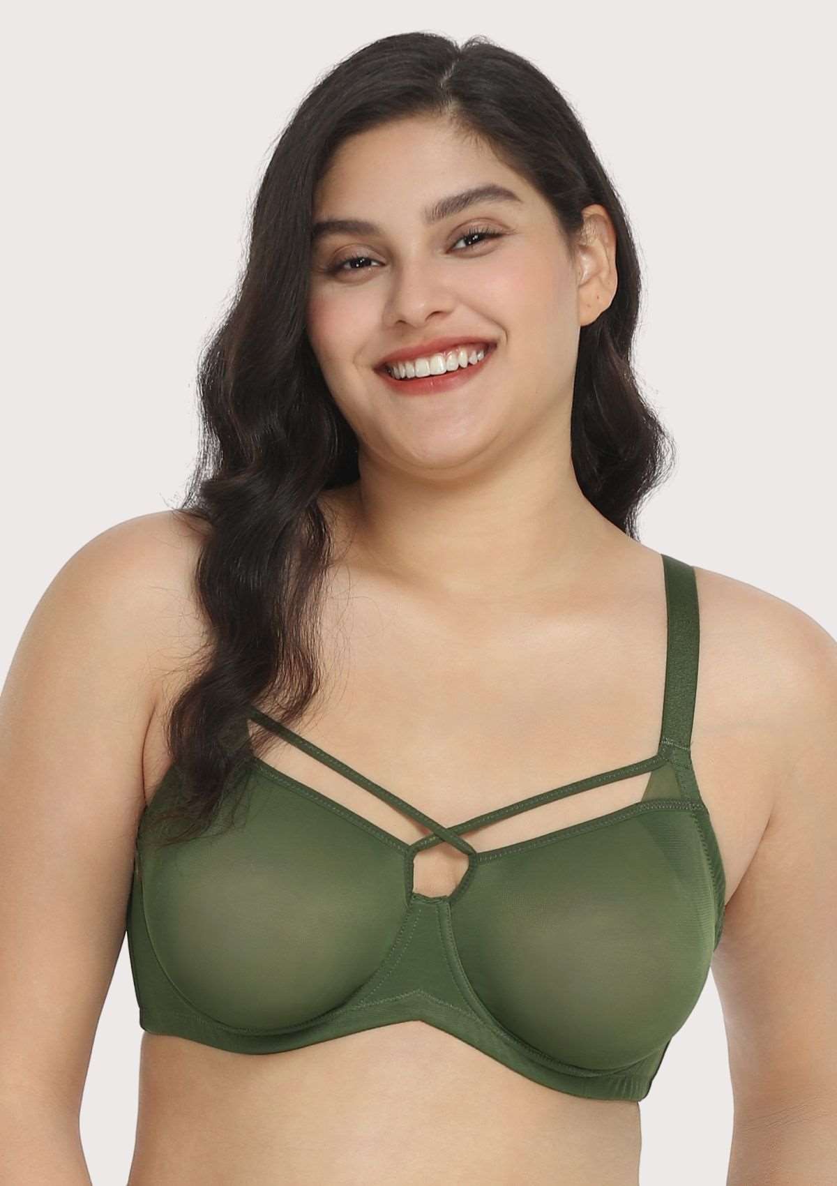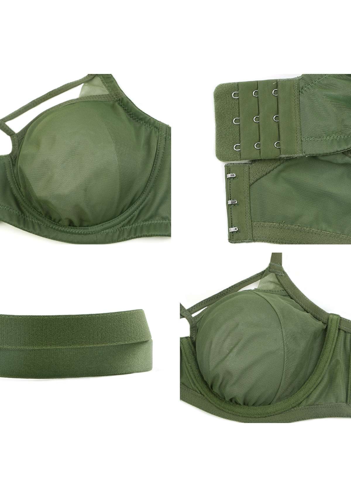 Billie Cross Front Strap Dark Green Smooth Sheer Mesh Underwire Bra Set 0525