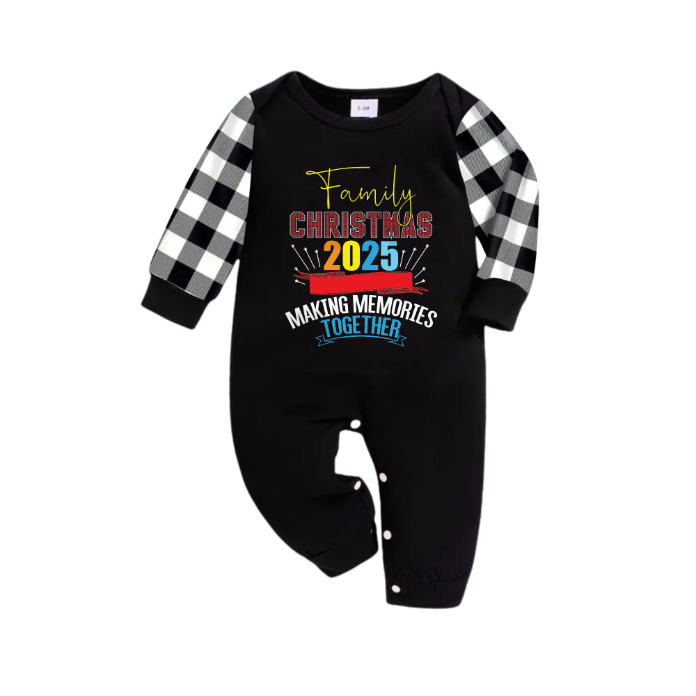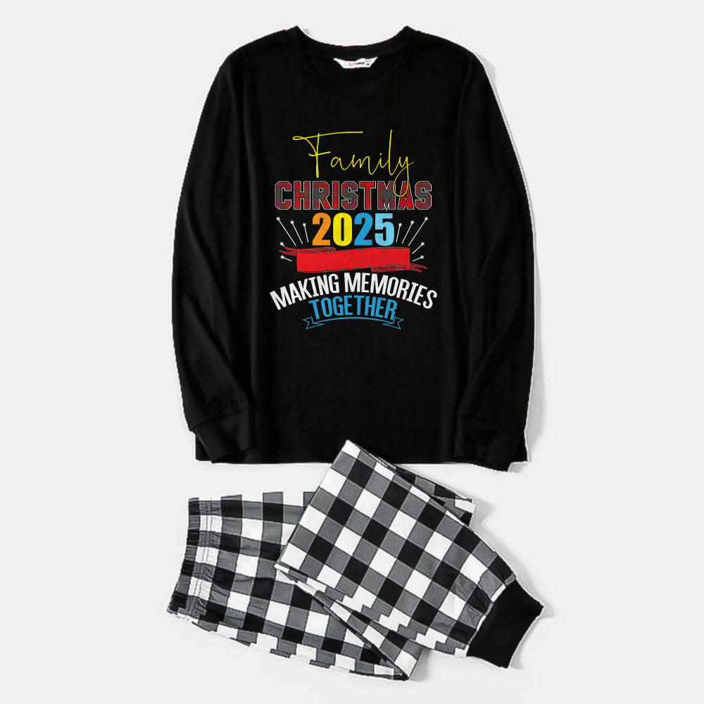 Black and White Plaid Christmas Pajamas Set With Christmas Colorful Text Print