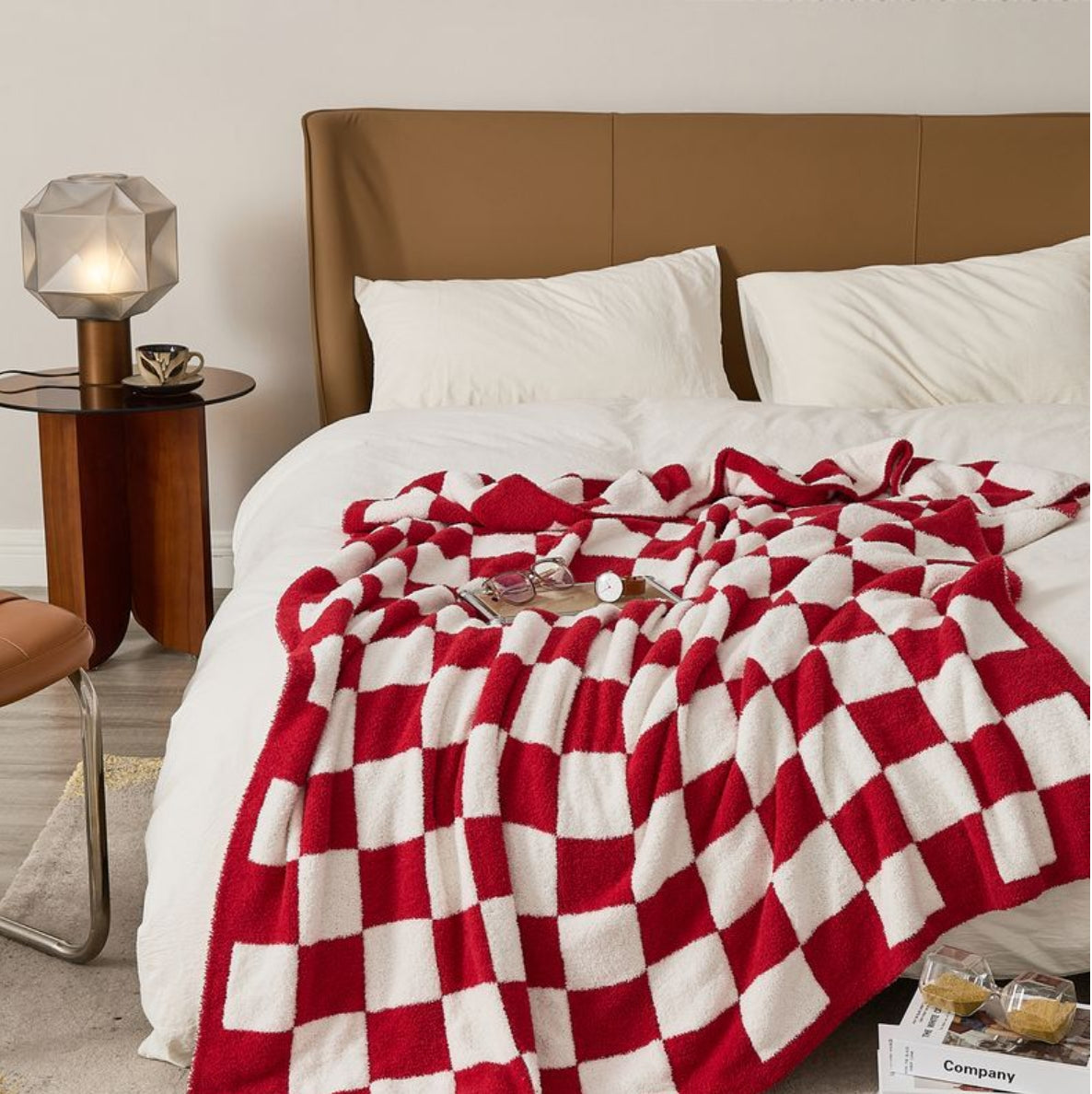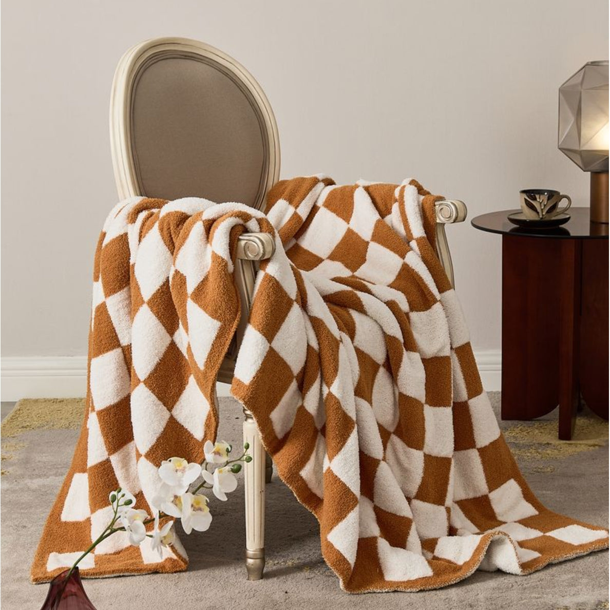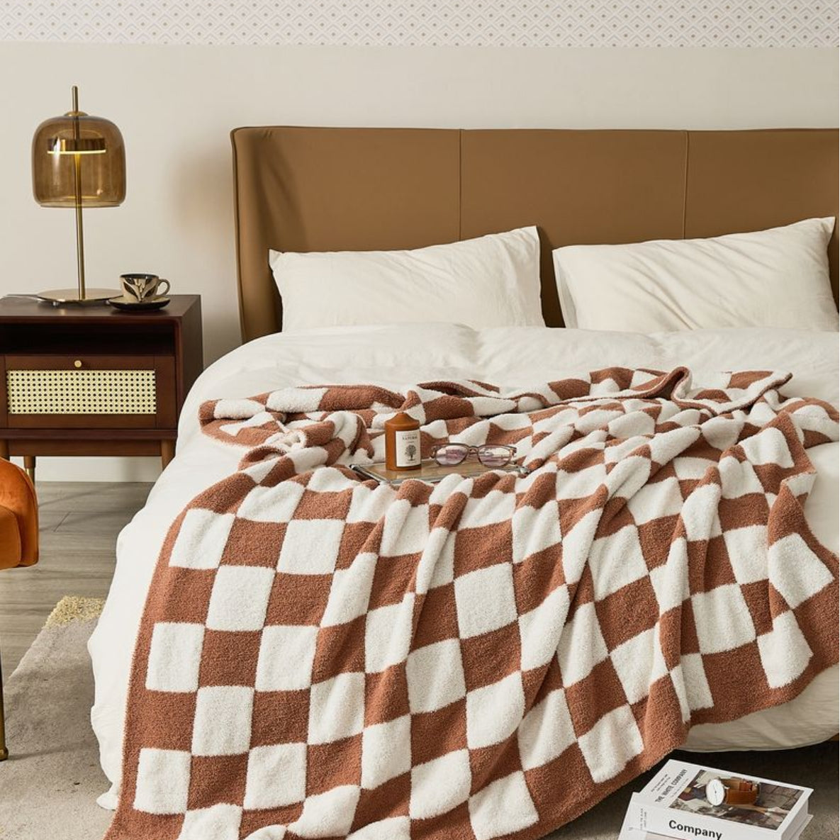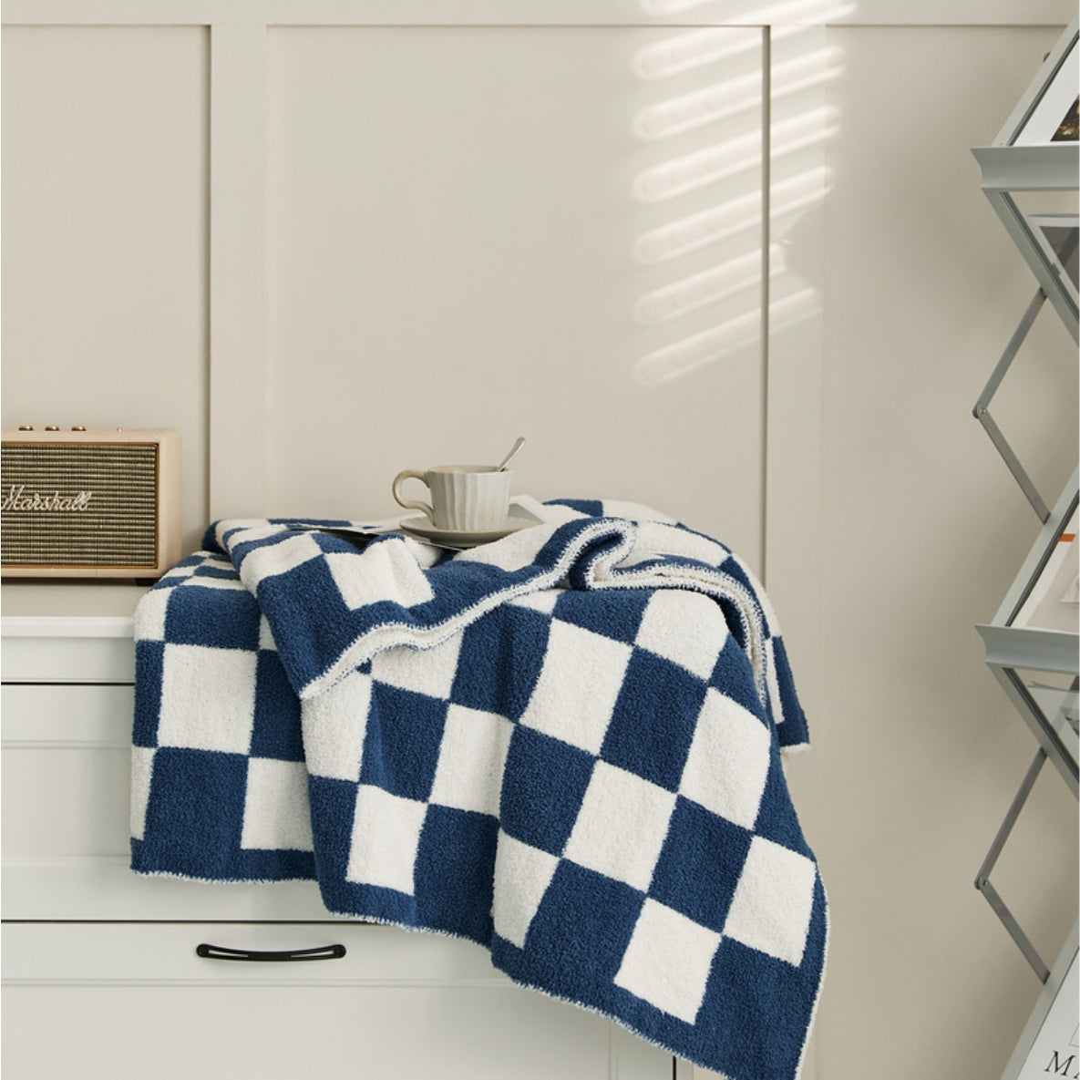 Checkerboard Cozy Knit Throw Blanket