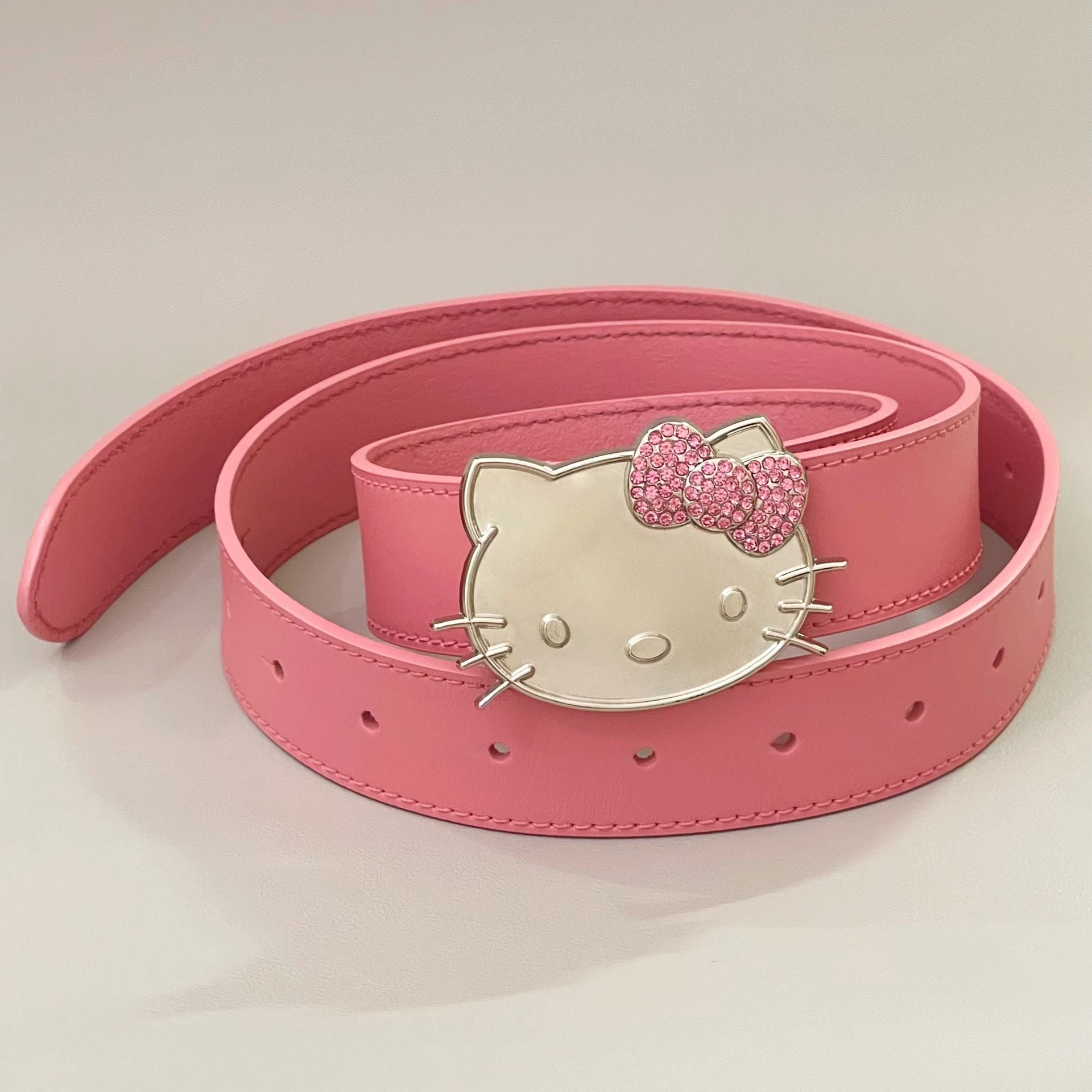 Hellokitty Rhinestone Belt Y2k Belt Cowgirl Leather Belt for Women