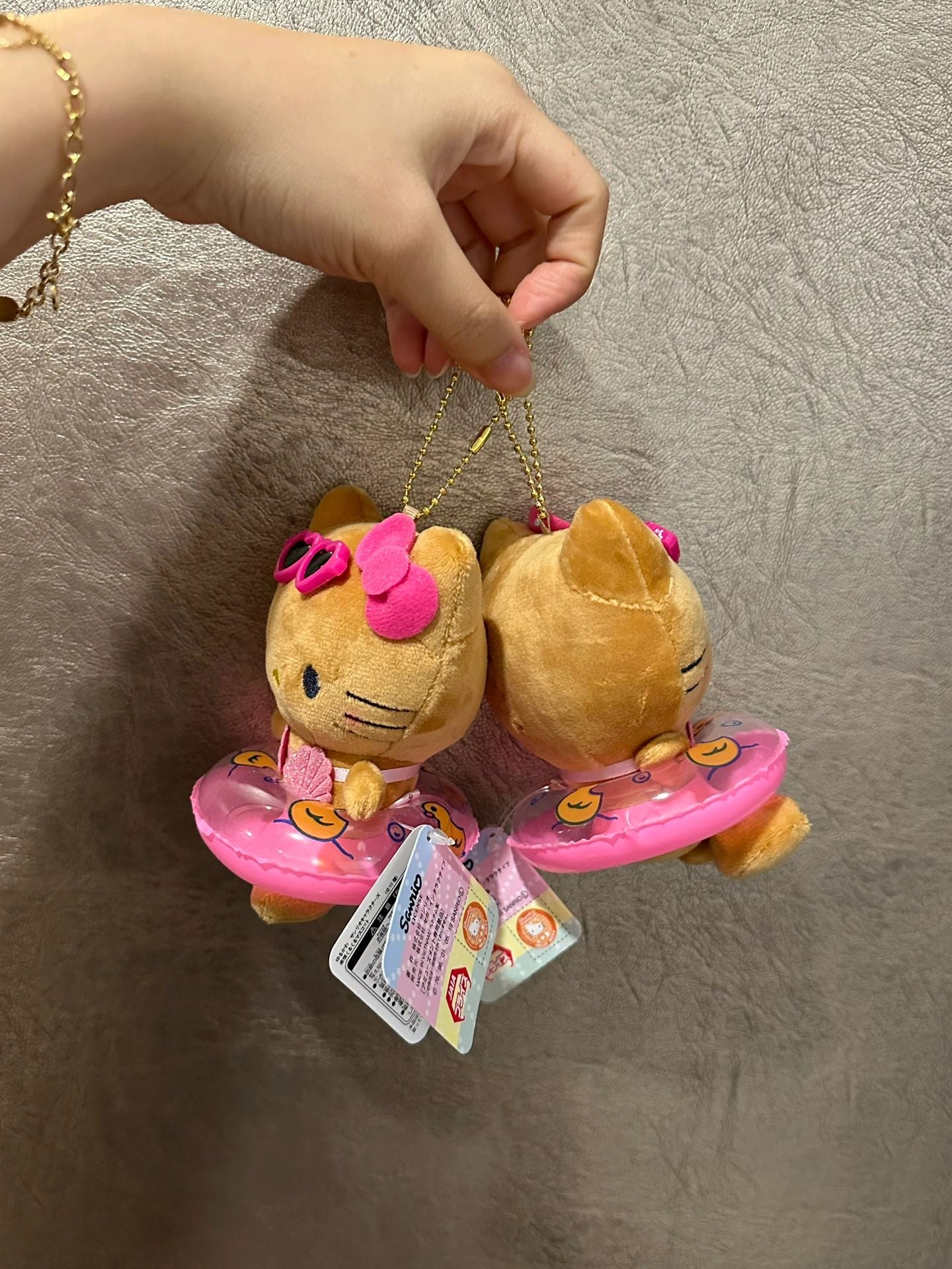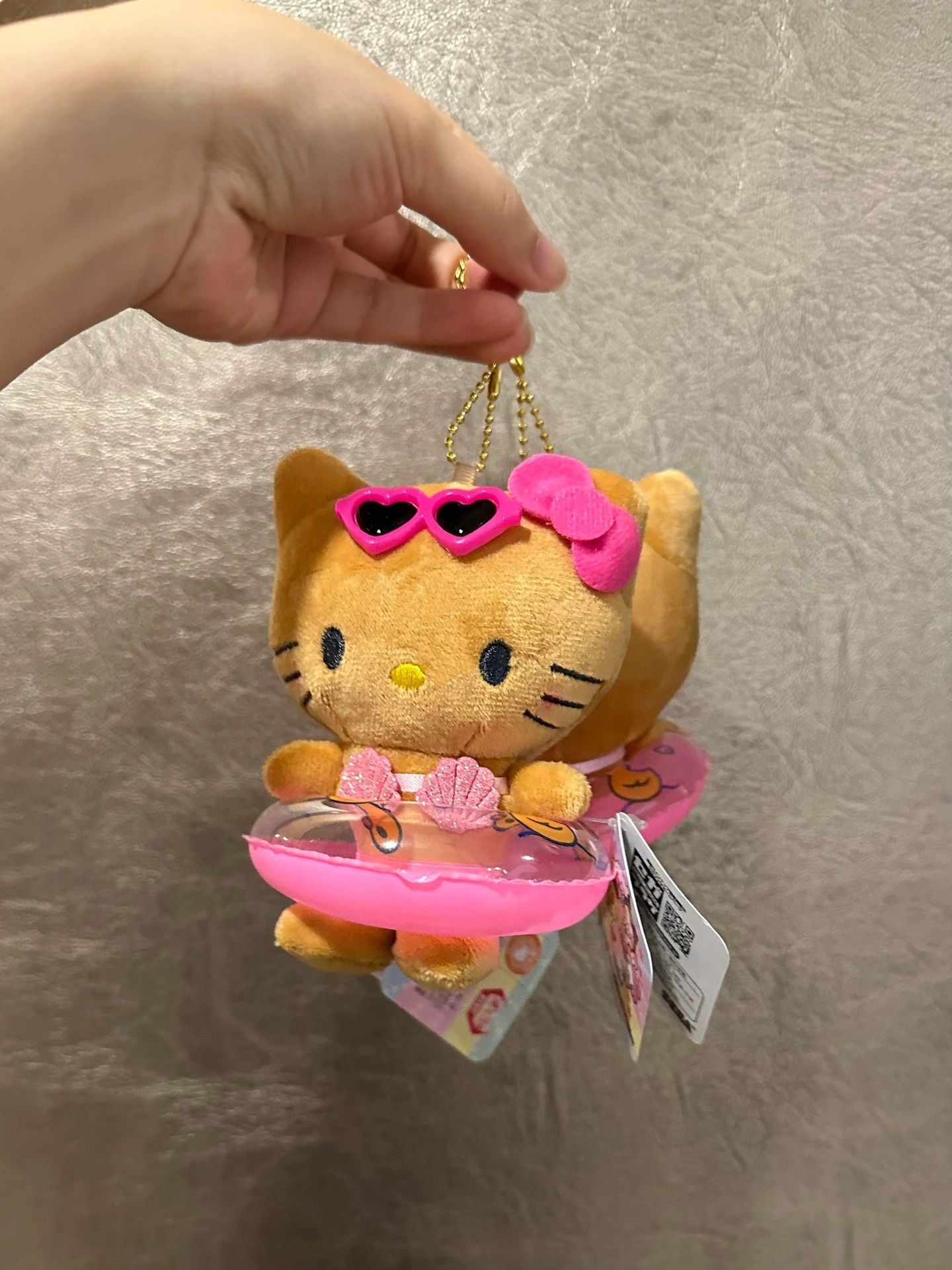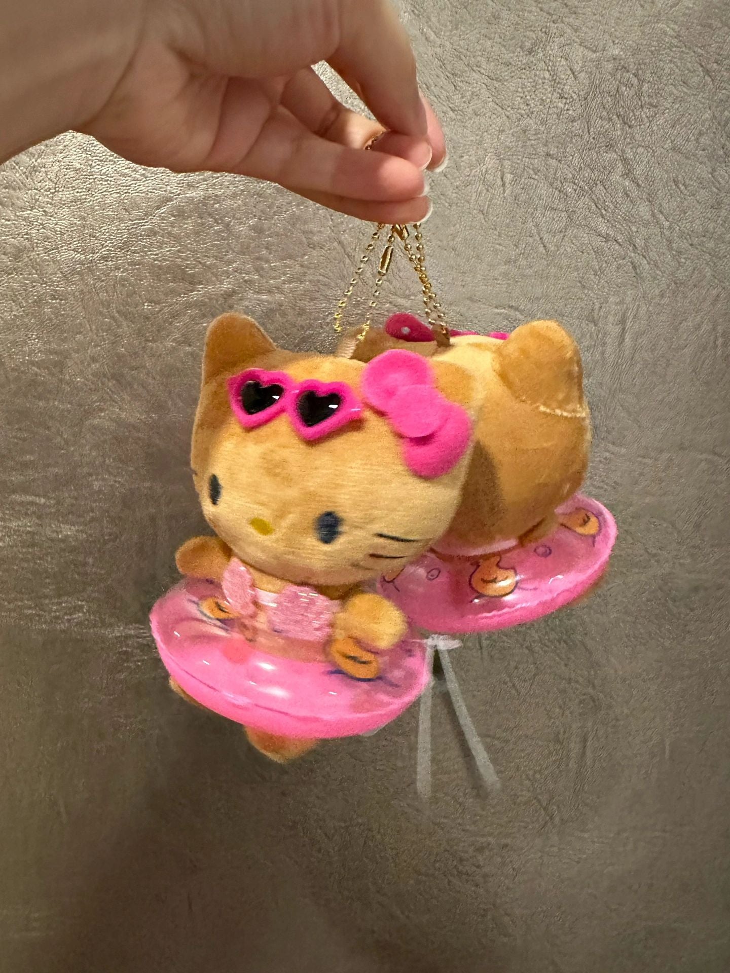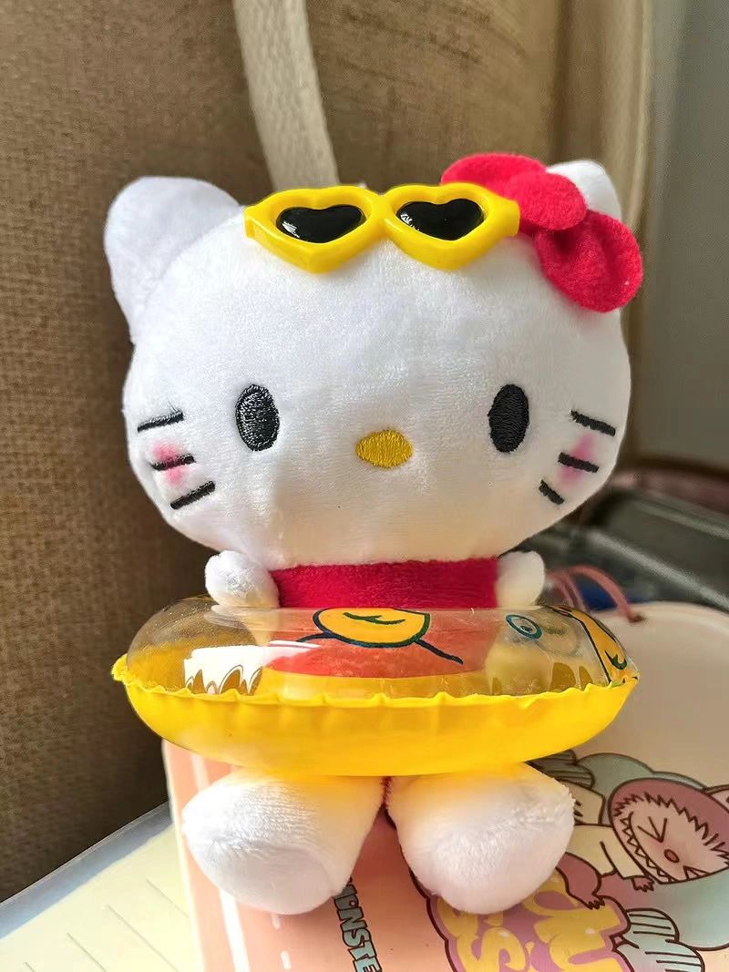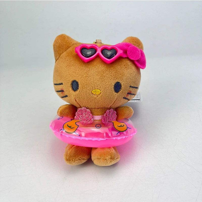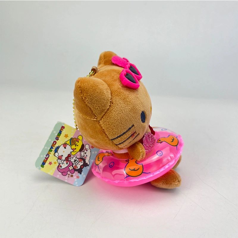 Hellokitty Tan Swimming Ring Plush Keychain|5in/12Cm Cute Pendant Doll Keyring Accessories Pendant Toy Girls Gift