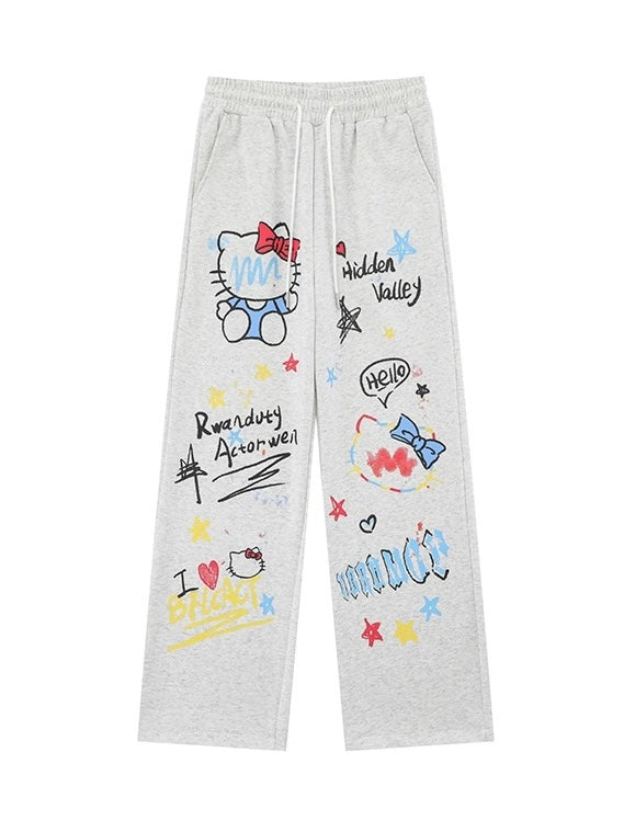 Hellokitty Women's Drawstring High Waisted Wide Leg Long Pants Casual Sweatpants