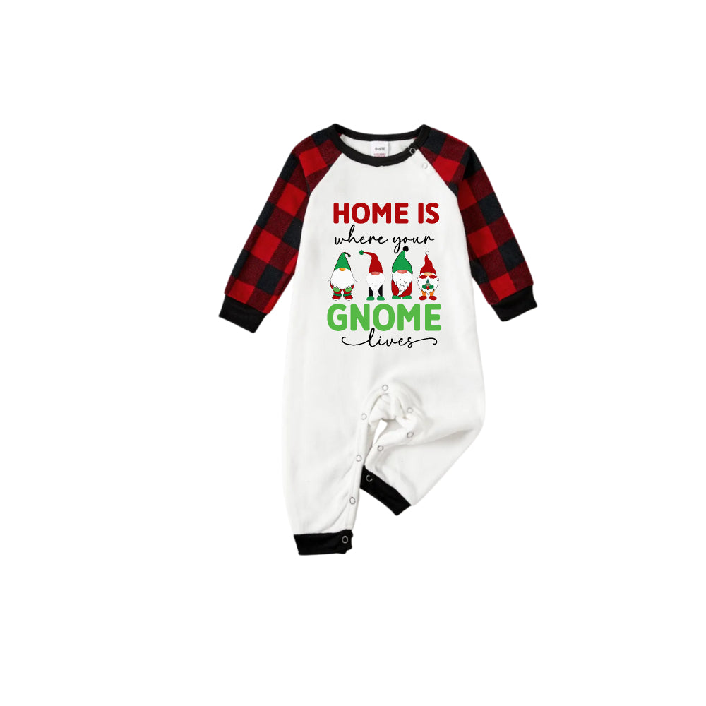 Red and Black Plaid Christmas Pajamas Set With Gnomies Family and Christmas Slogan Print