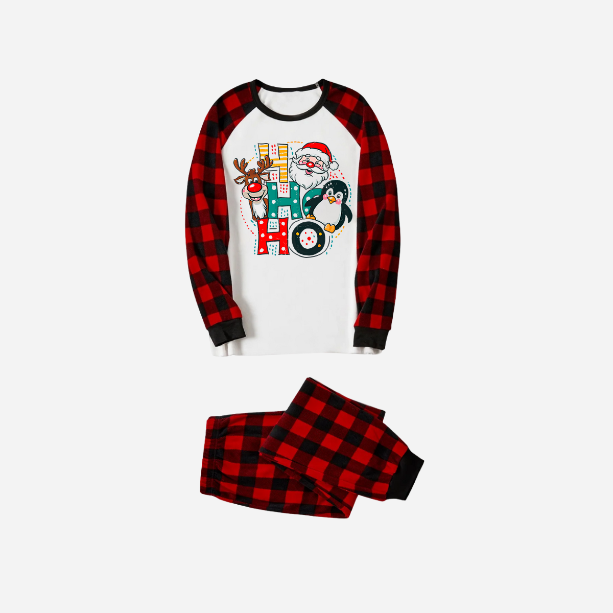 Red and Black Plaid Christmas Pajamas Set With "HO HO HO" Pattern Print