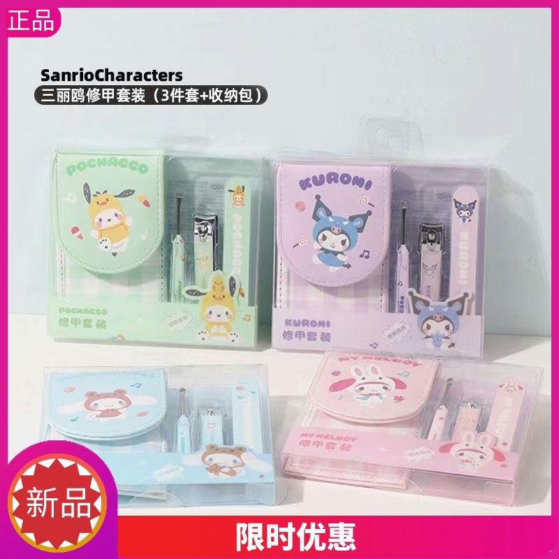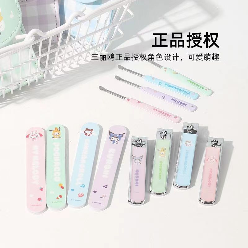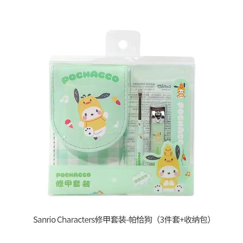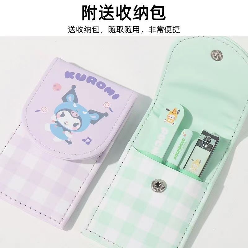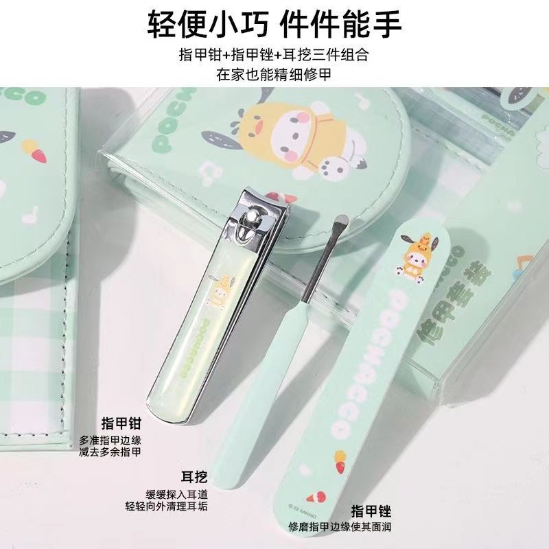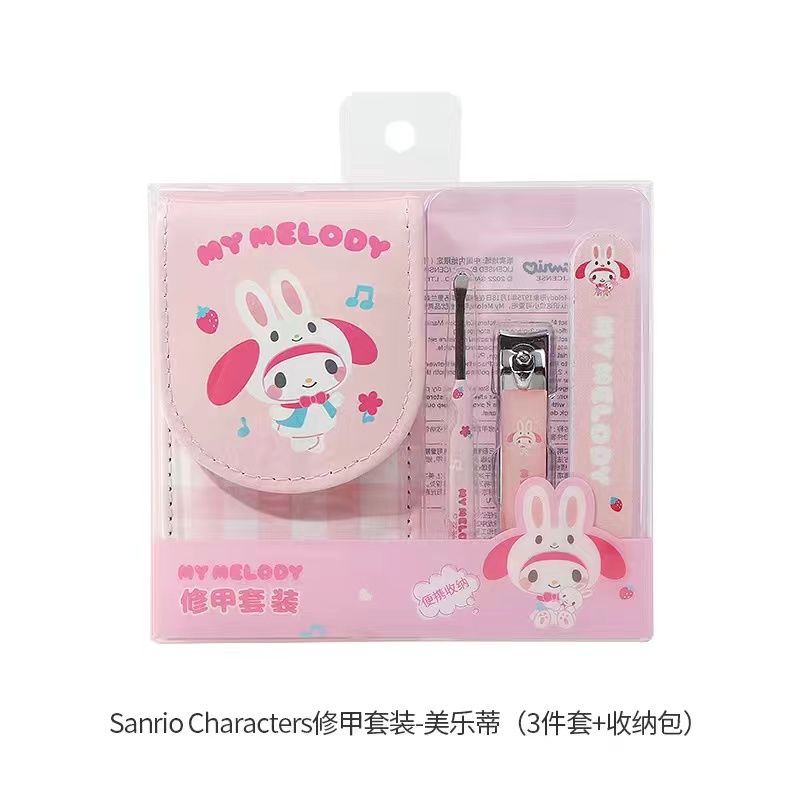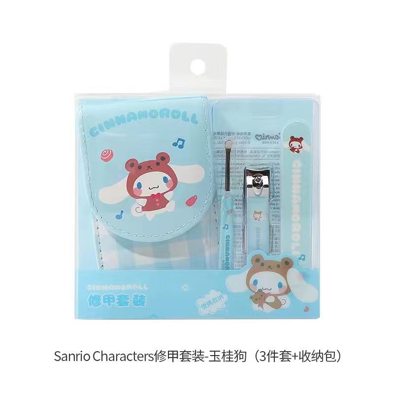 Sanrio Nail Clippers Portable Set, Stainless Steel Manicure Set 3 in 1, with Leather Bag, Suitable for Home, Workplace, Outdoor Travel, Gift Giving, Beauty Salon