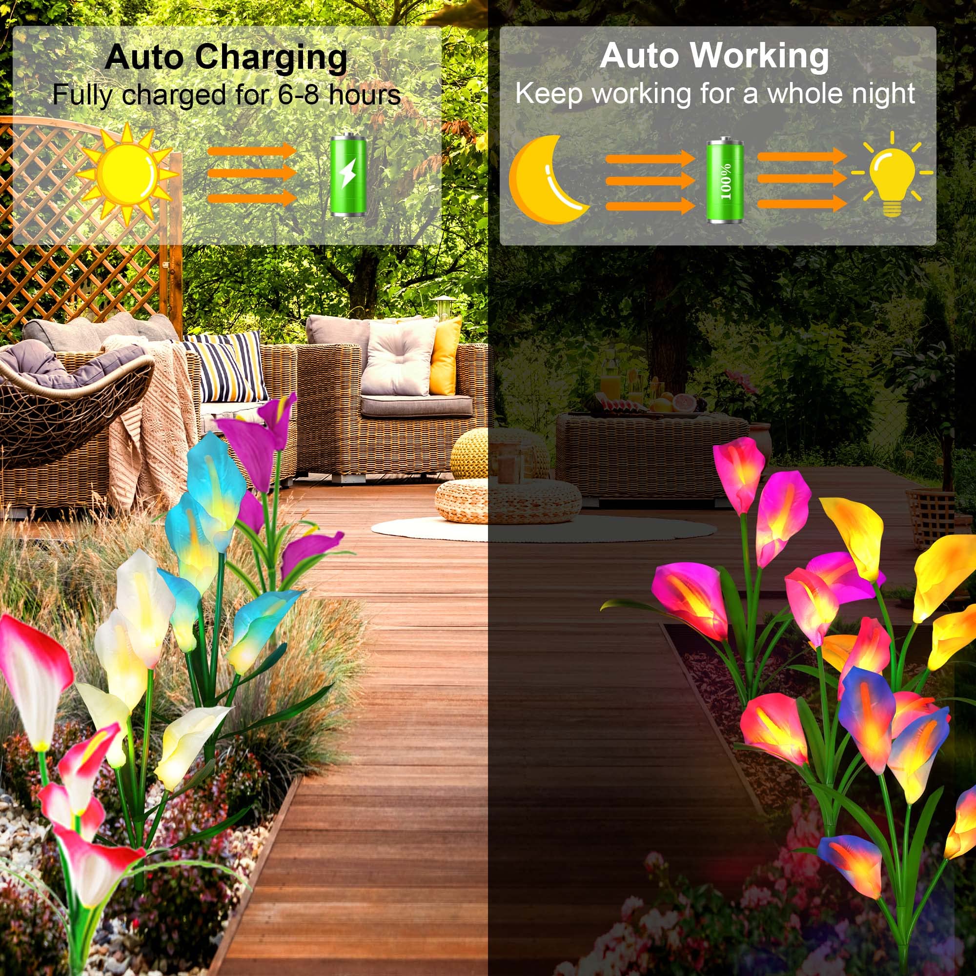 7 COLOR CHANGING: Different from single lighted flowers, our calla lily solar flowers can be freely changed in color, making your path, garden or yard more beautiful.