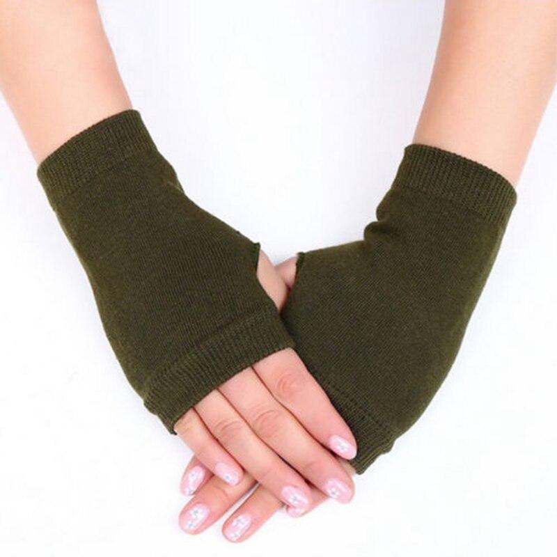 Women Stretchy Half Finger Wool Mittens Fingerless Solid Color Gloves