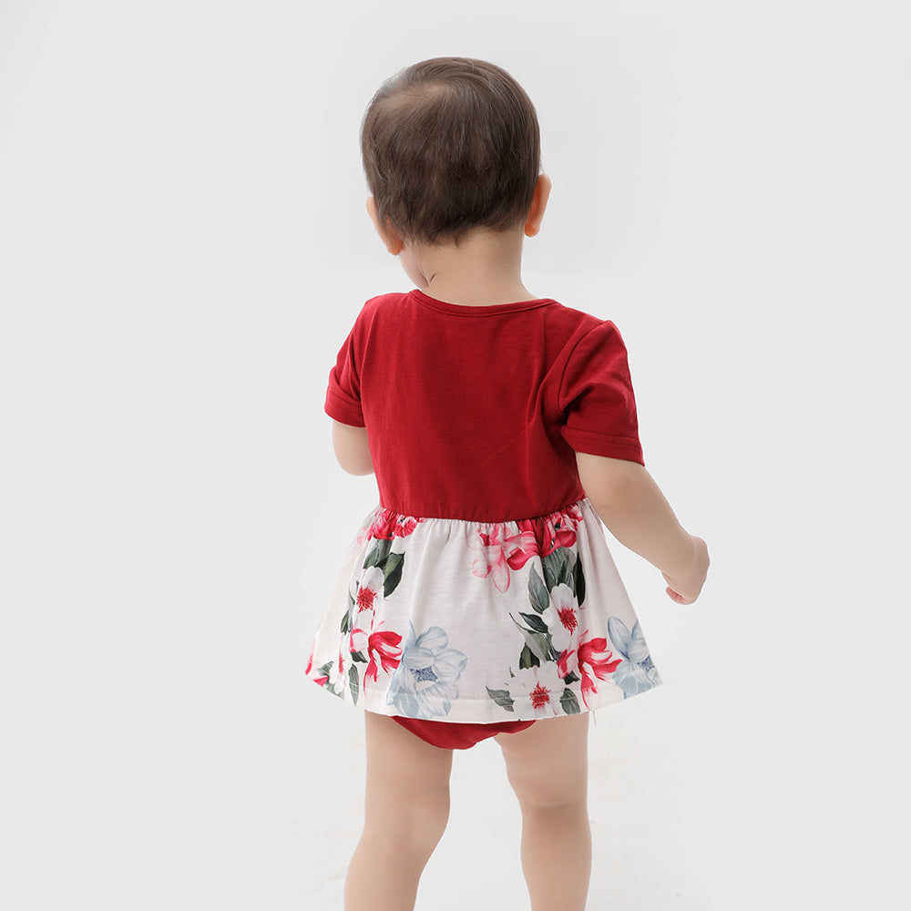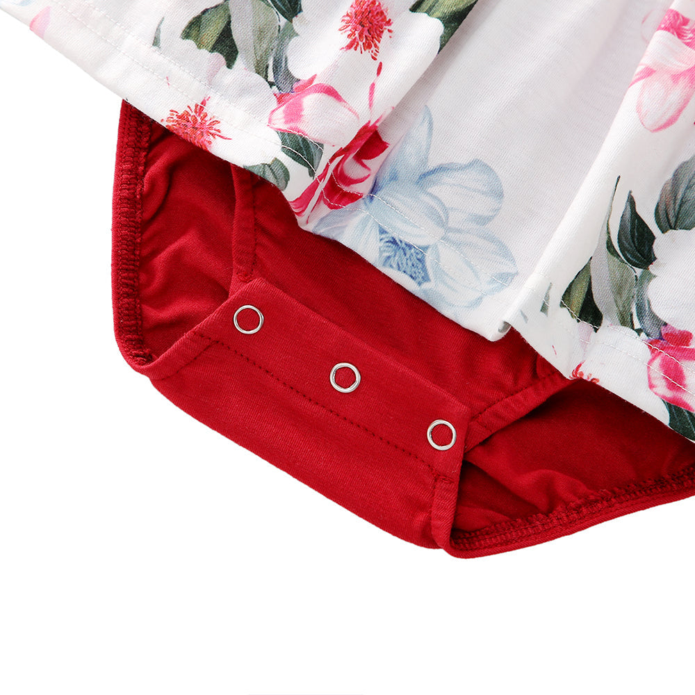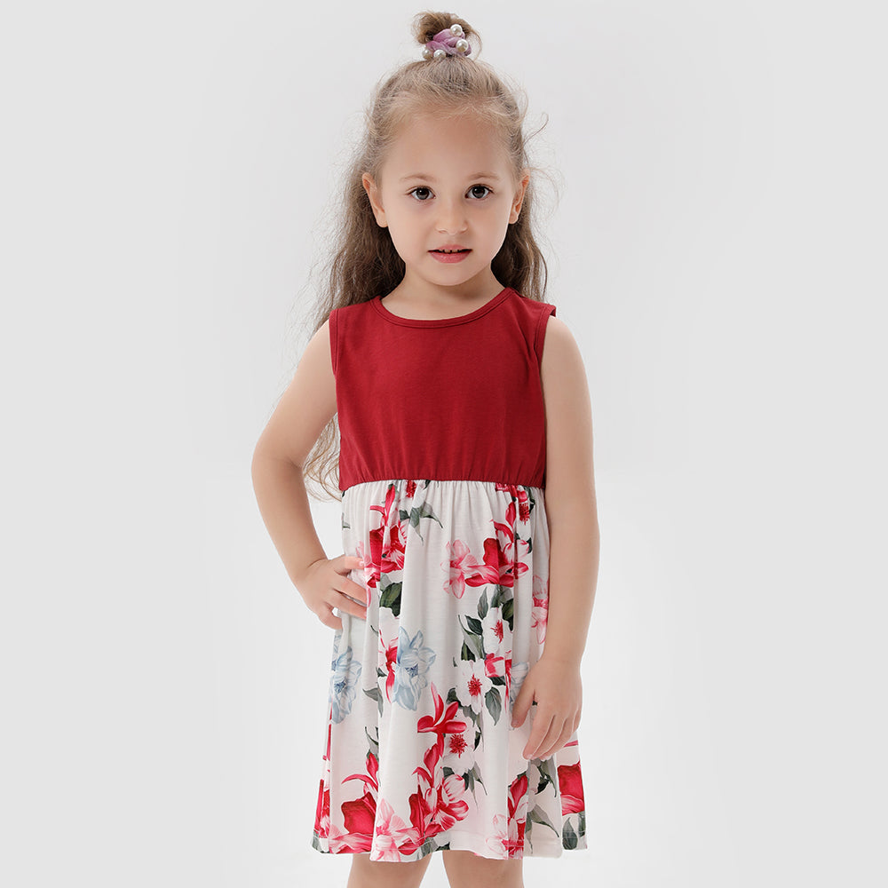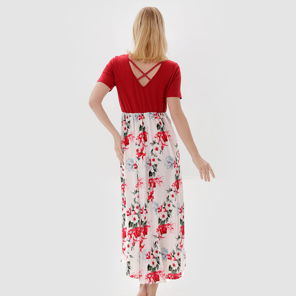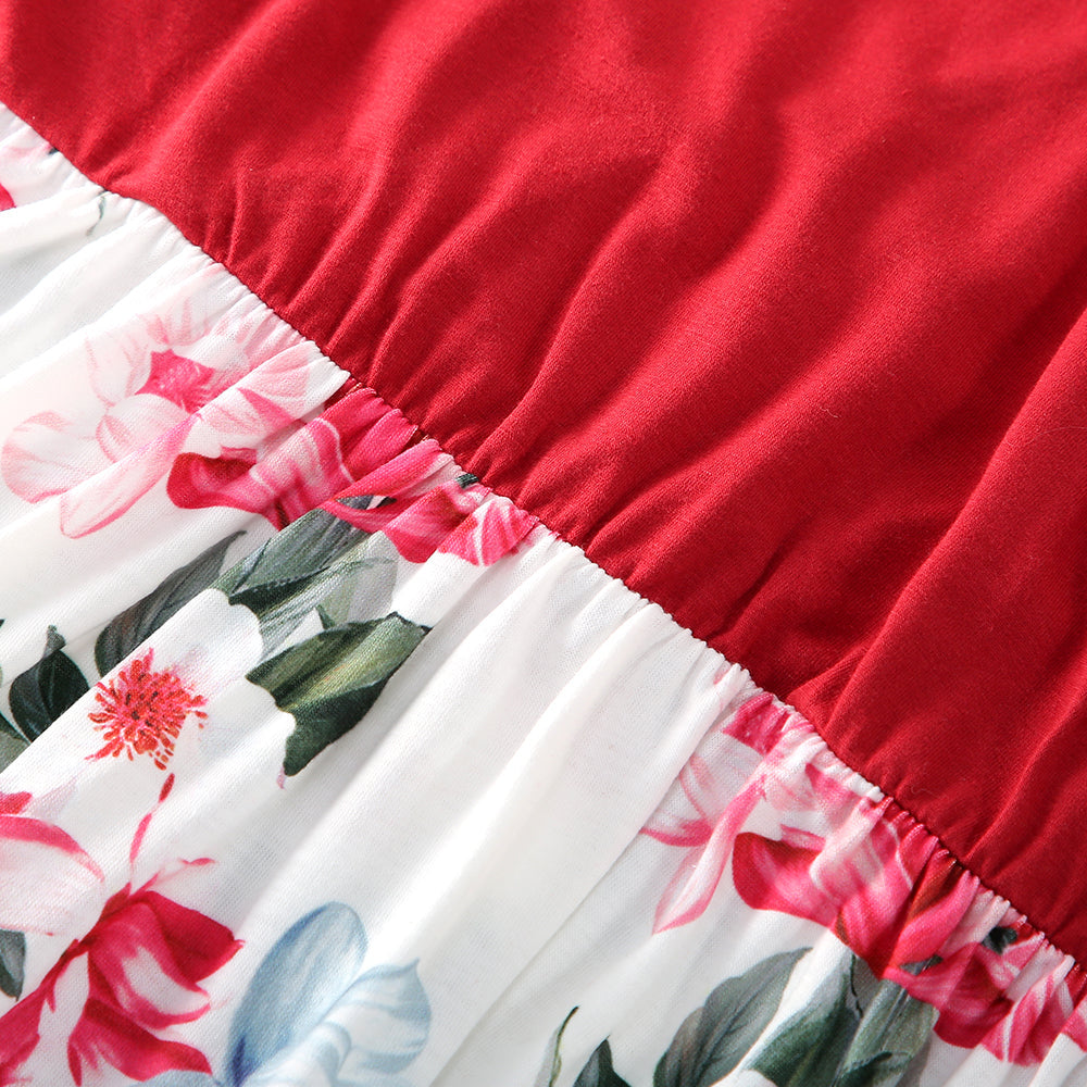 2022 Family Matching Outfit Red Floral Print Dresses and T-shirts Sets Family T-ShirtsFamily Matching Tee