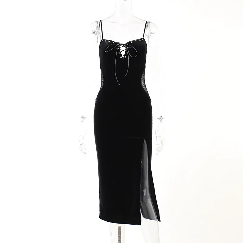 Perfect for formal events, parties, or occasions where you want to make a statement, the Gothic Bandage Elegant Women High Split Flare Sleeve Dress combines style with sophistication. Its unique blend of bandage elements, high split feature, and flare sleeves creates a bold and captivating look that is sure to turn heads. Embrace your inner gothic fashionista with this elegant dress and showcase your individuality with confidence and poise.