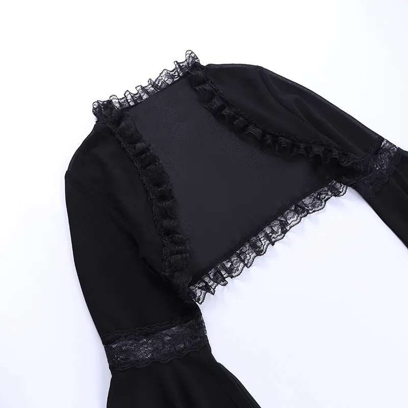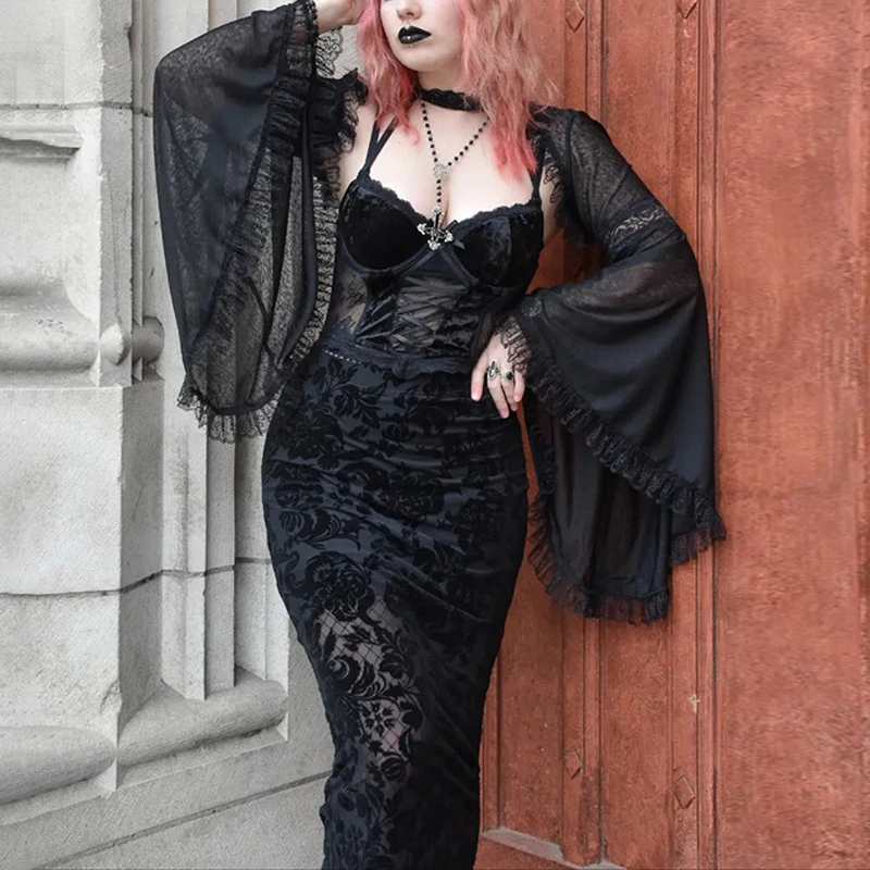 Ideal for evening events, parties, or special occasions, this dress is perfect for those who want to make a bold statement with their style. The combination of the gothic aesthetic with a sexy and modern halter design creates a unique and captivating outfit that is sure to turn heads. Embrace your inner gothic goddess with this stunning lace halter dress and exude confidence and allure wherever you go.