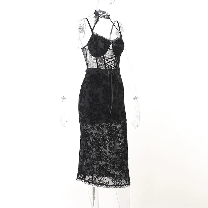 Gothic Aesthetic Sexy Lace Dresses Halter Dress