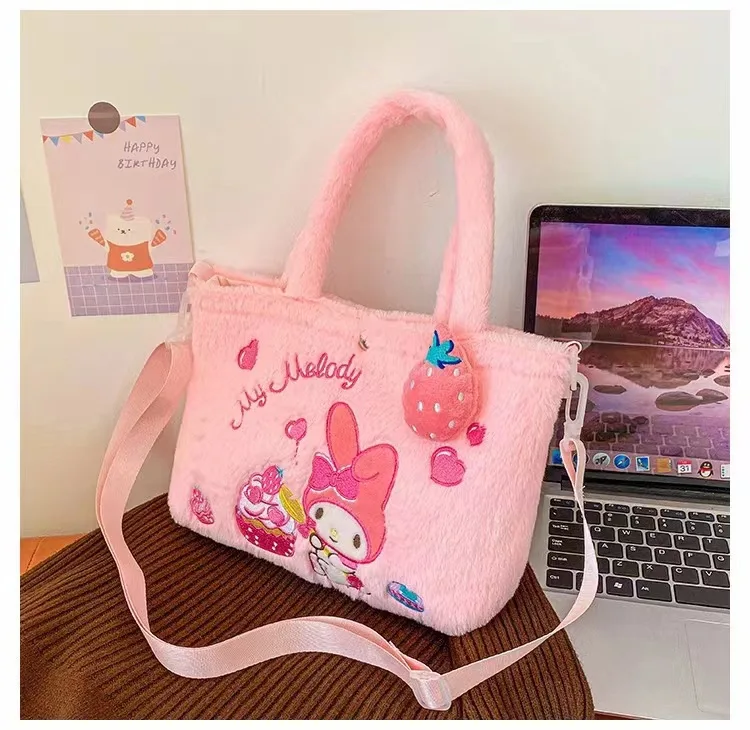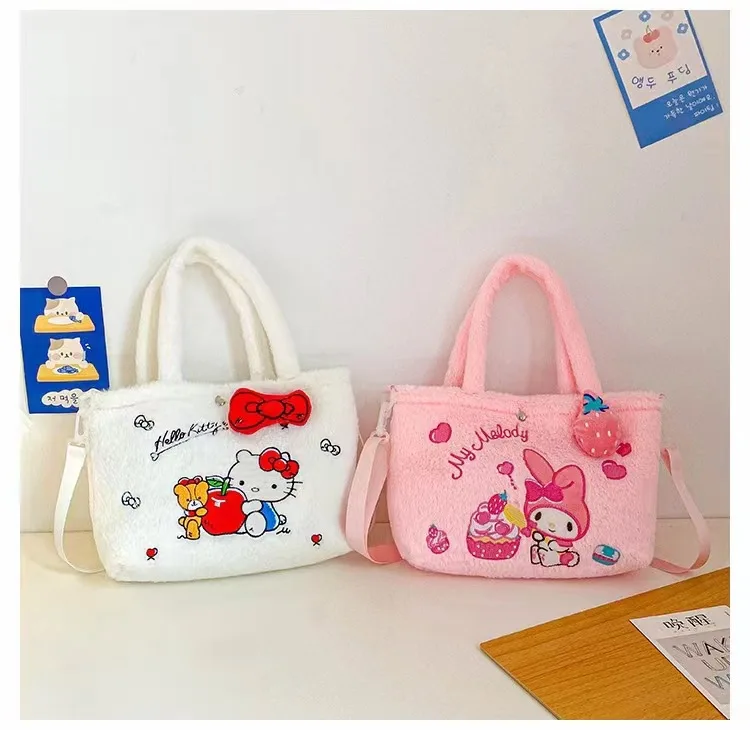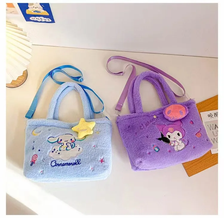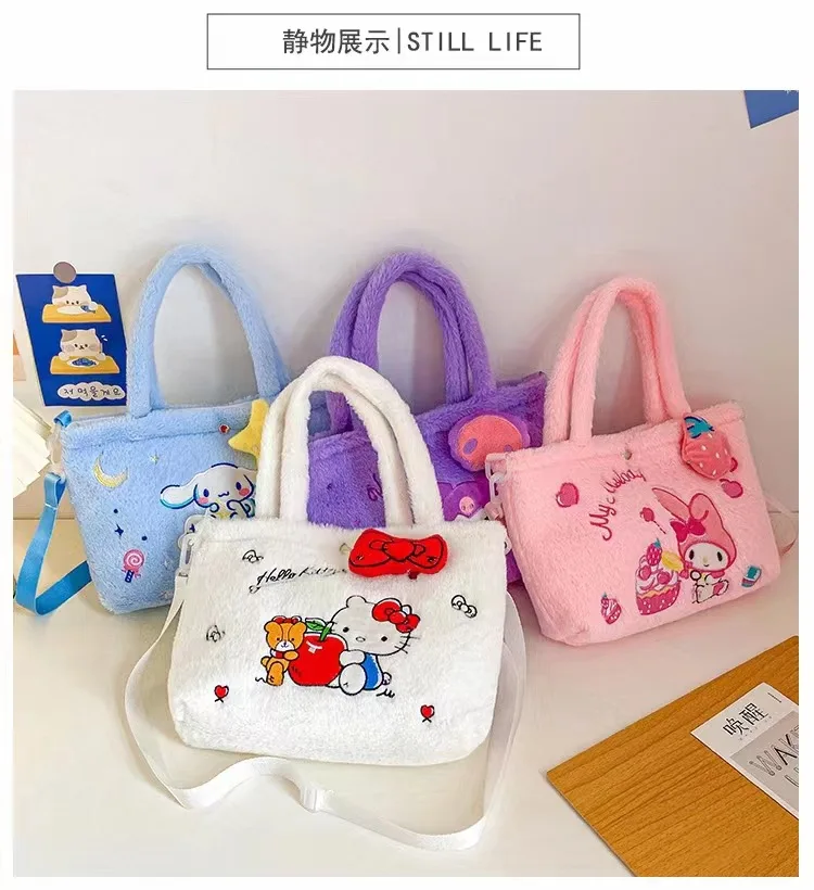 Anime Sanrio Plush Bag Cinnamoroll Crossbody Bag Kuromi Children Backpack Melody Handbag Hello Kitty Shoulder Bag Kids Toys Gift