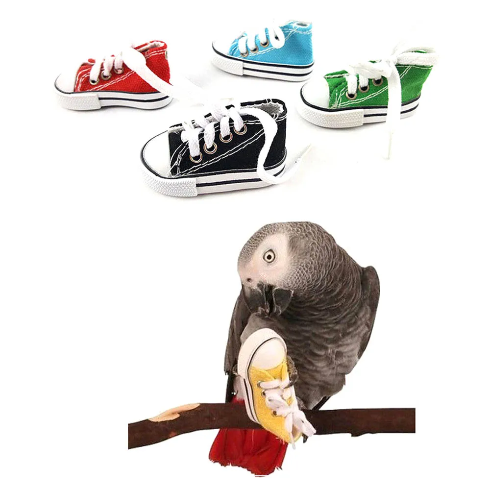 Mini Canvas Shoes Parrot Bird Toys Pet Bird Shoe Cage Decoration Standing Climbing Toy Parrot Bird Cage Pet Shoes Parrot Toys